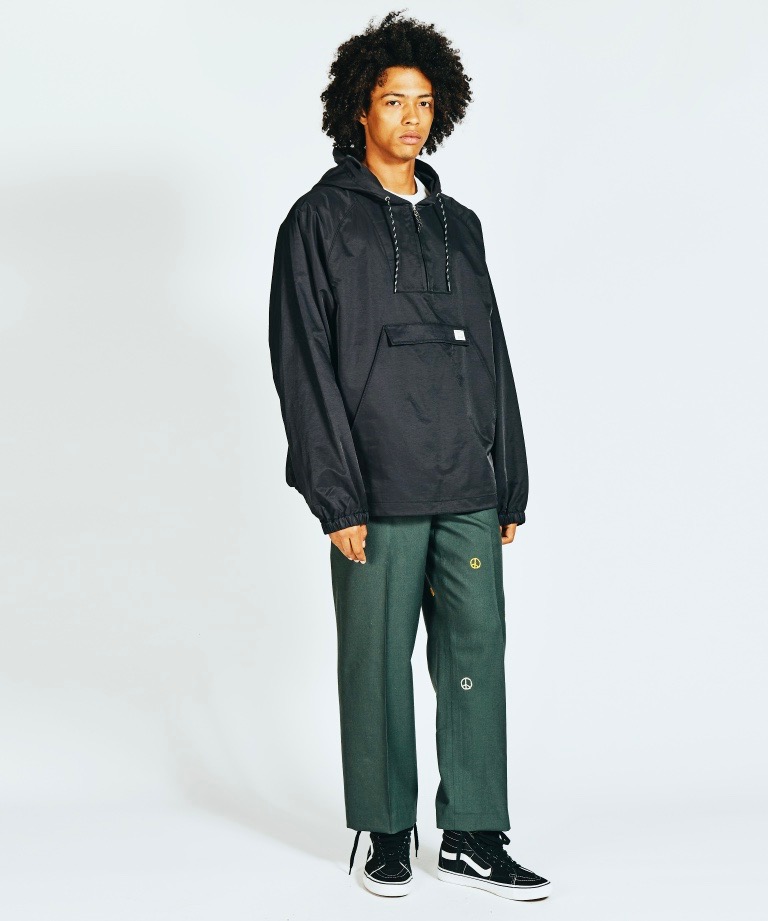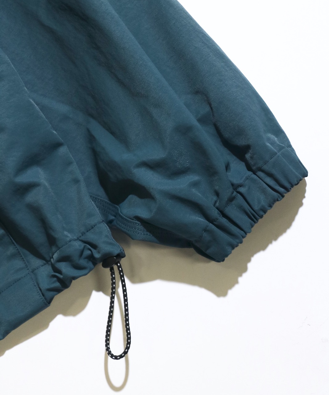 ボリュームのあるボックスシルエットのアノラックパーカーは男女問わず着用していただけます。撥水性のある生地の為、タウンユースにはもちろん、アウトドアなどアクティブなシーンでも汎用性の高さを発揮してくれます。またパーカー感覚で、コートの下など、インナー使いにもオススメです。