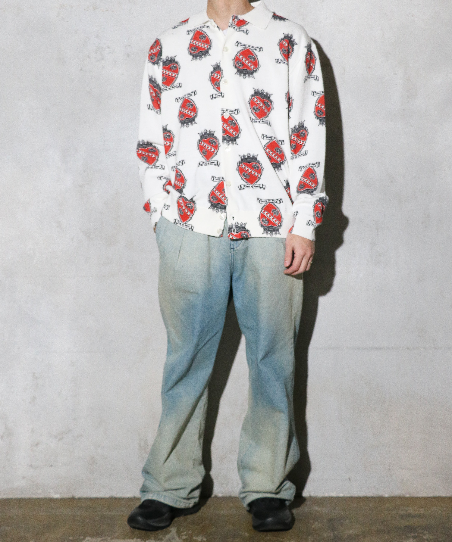 ・WHITEとGREENのプリントのモチーフは、ニルバーナ/カート・コバーン着用のアーカイブ資料からNICK&NORAのランチ・ハートクラウンの柄をインクジェットで再現。