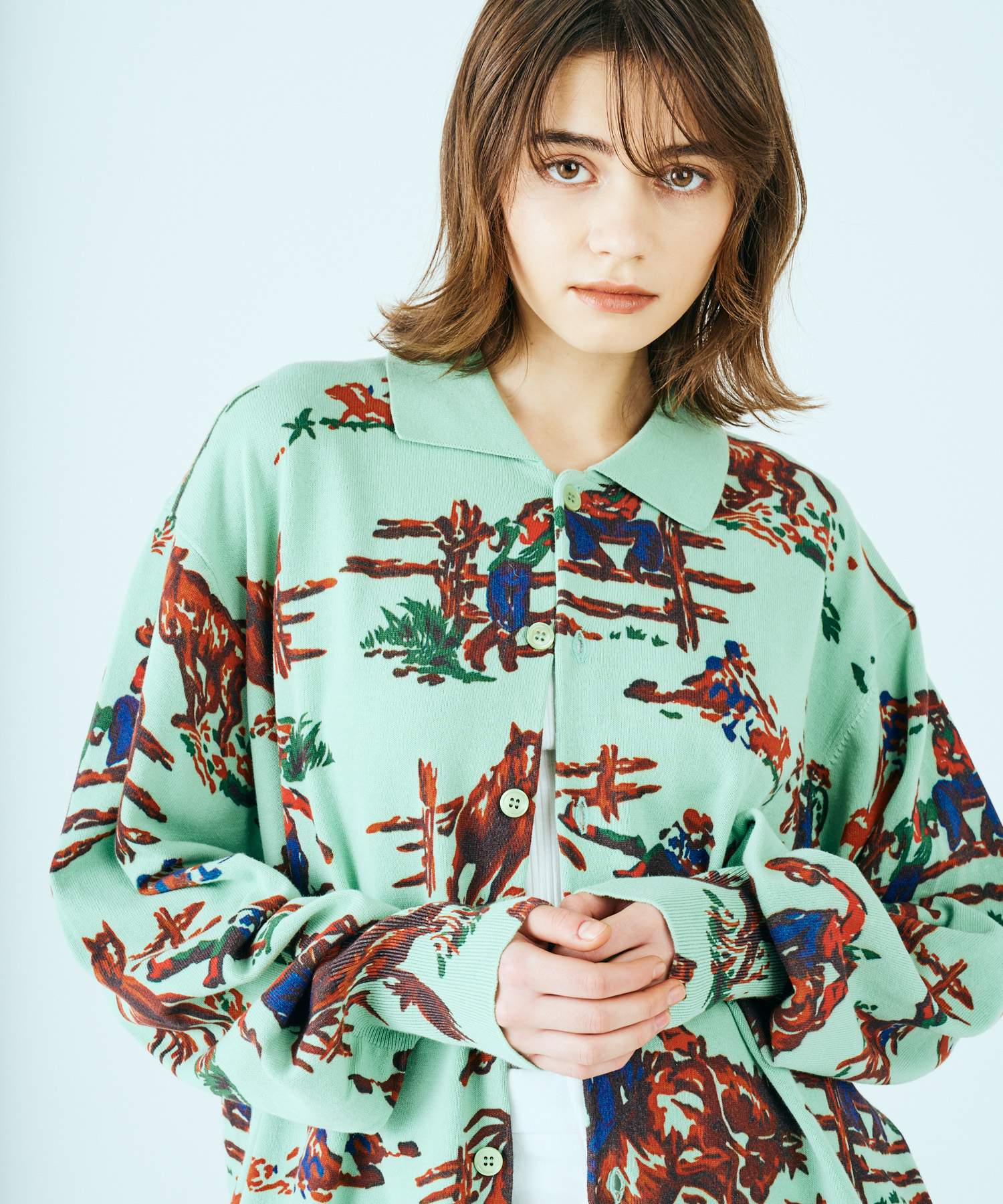 PRINTED POLO CARDIGAN