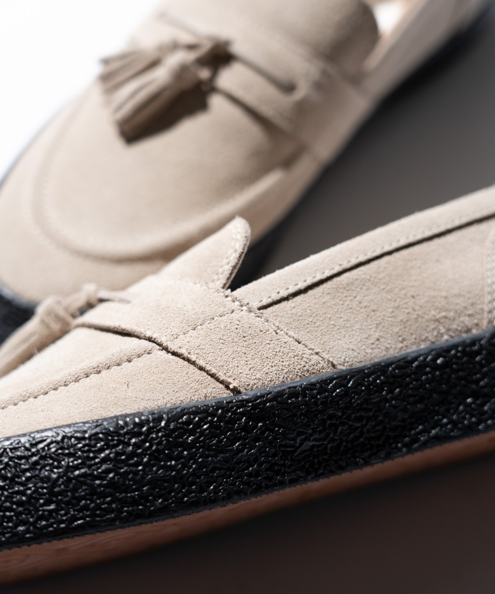 スリッポンとタッセルの組み合わせが印象的なアイテム。