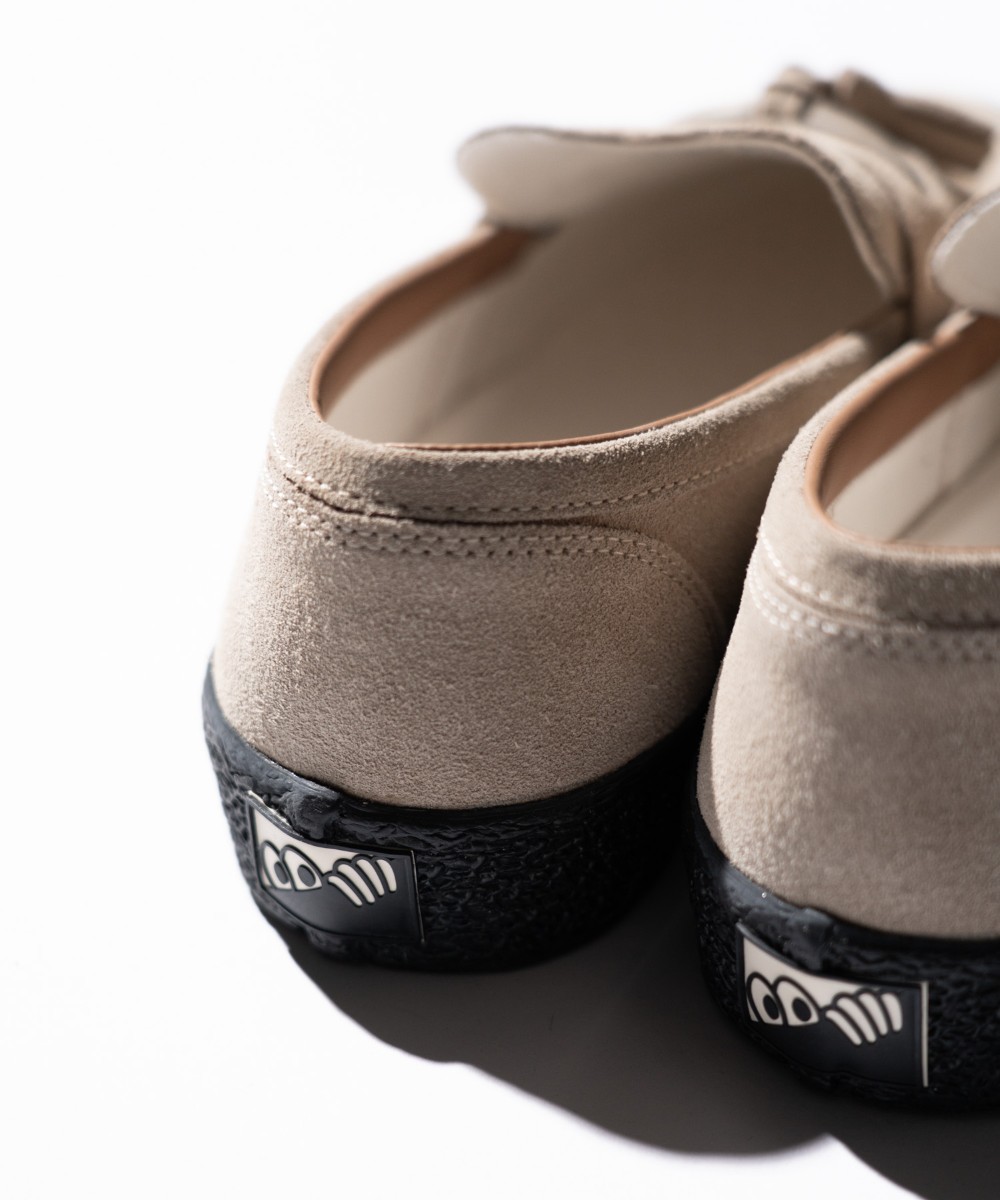 ・VM002のラストと質感のあるフォクシングテープをベースに、スリッポンとローファーを組み合わせたハイブリッドデザインです。