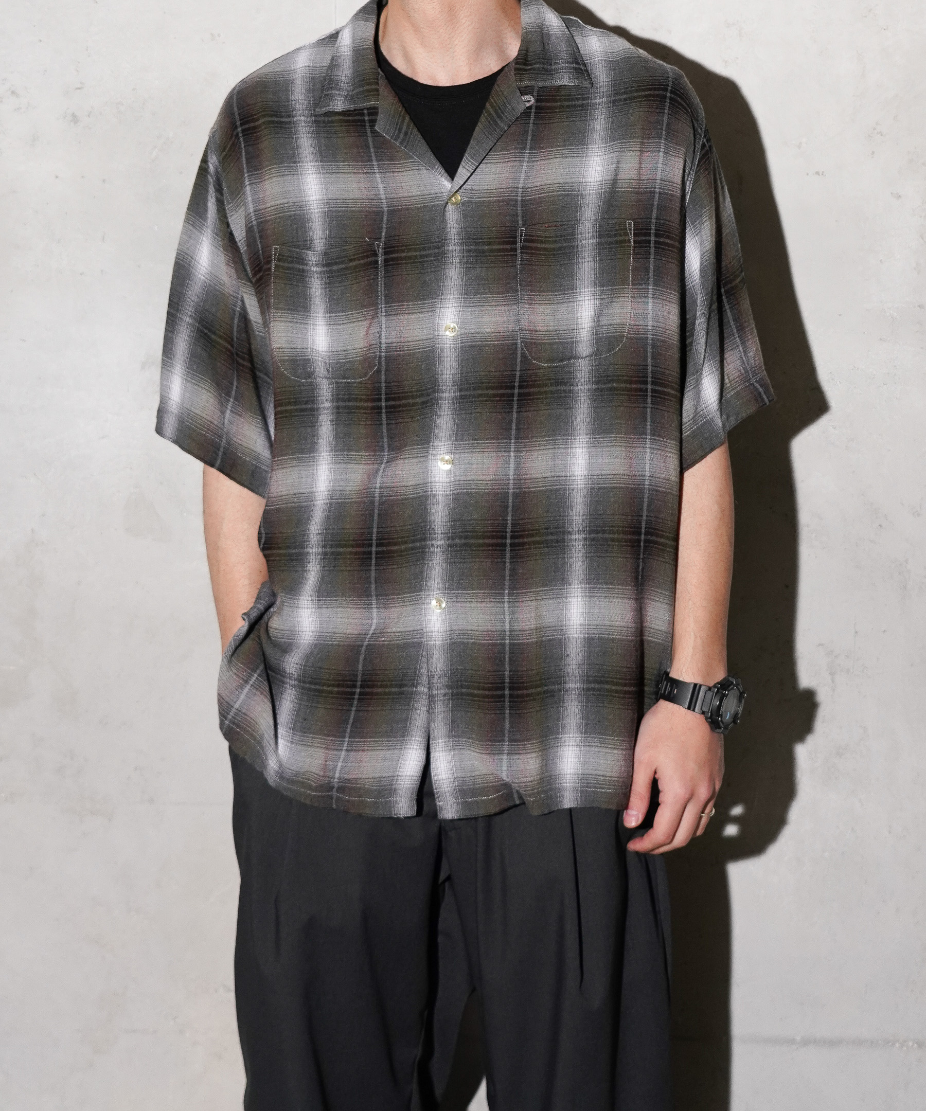 1960年代のヴィンテージ感を現代的にアップデートしたTOWNCRAFTのループカラーシャツです。こだわり抜いたオンブレチェックは、アーカイブを元に先染めで織り上げ、細番手の糸による独特な陰影が魅力。レーヨン素材ならではの柔らかなドレープ感と、丁寧な縫製による着心地の良さもポイントです。1950年代のバイカーやアーティストから90年代のカート・コバーンまで、多くのカルチャーアイコンに愛されてきたオンブレシャツ。経年変化も楽しめる一着は、長く愛用いただけます。