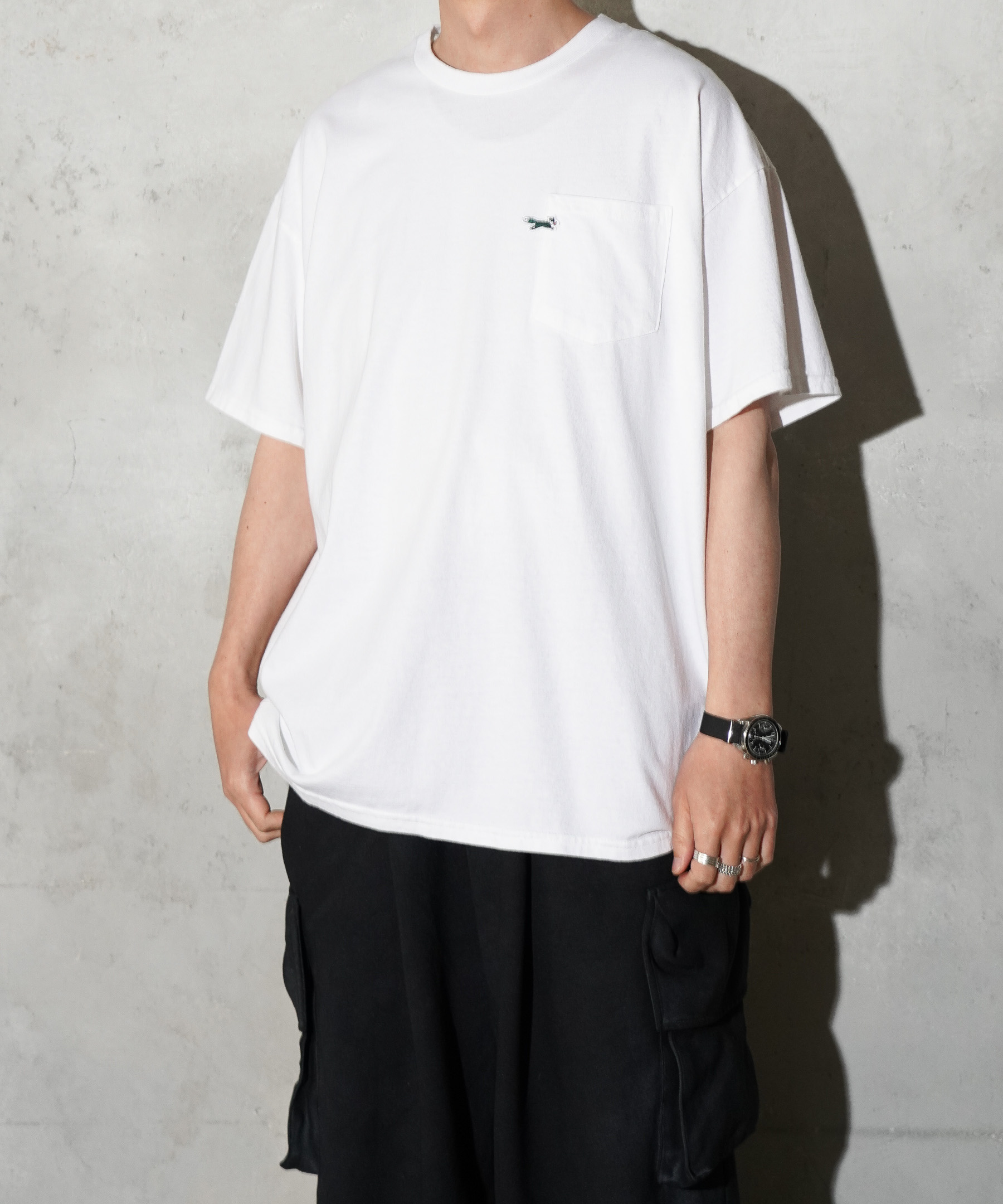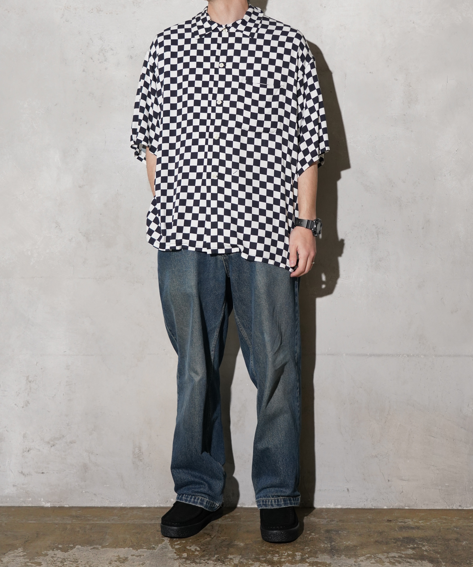 当時のXLサイズをベースに袖丈・着丈・袖付けの角度を調整しおさまりの良いボックスシルエットに仕上げています。