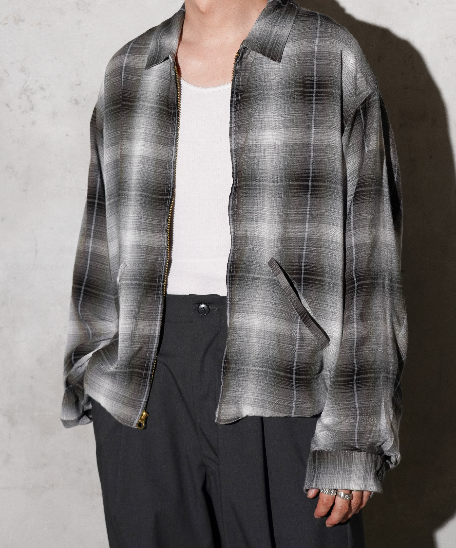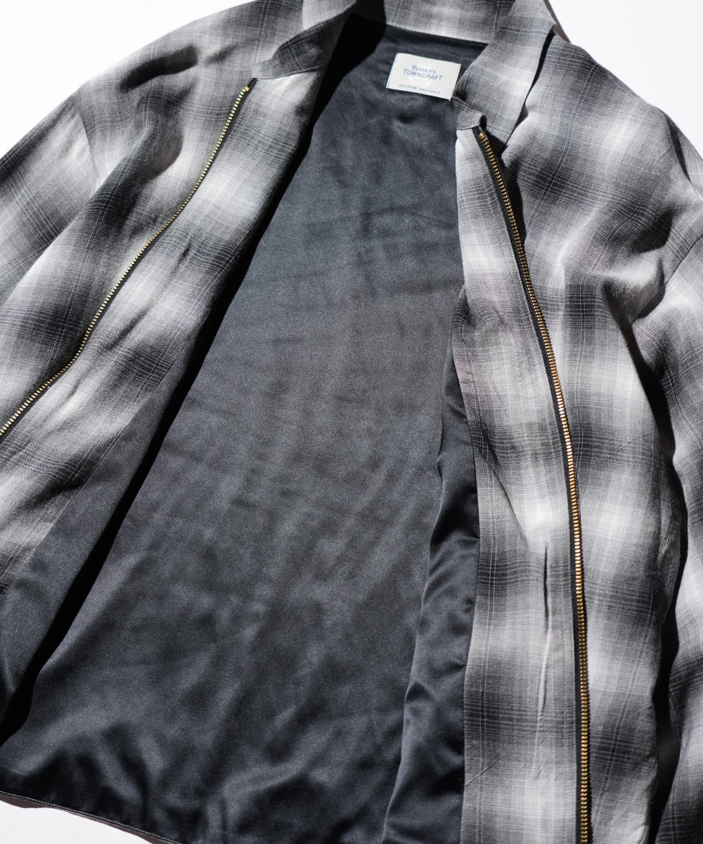 身幅とアームホールにゆとりを持たせつつ、ショート丈でバランスの良い仕上がりです。滑らかで落ち感のあるレーヨン素材は、シャツ感覚でライトアウターとしても活躍。無地ブラックとクラシカルなオンブレチェックの2タイプ展開で、スタイルに合わせた選択が可能です。袖通りの良い裏地やIDEALジップなど細部までこだわった一着は、シーズンを通して重宝します。