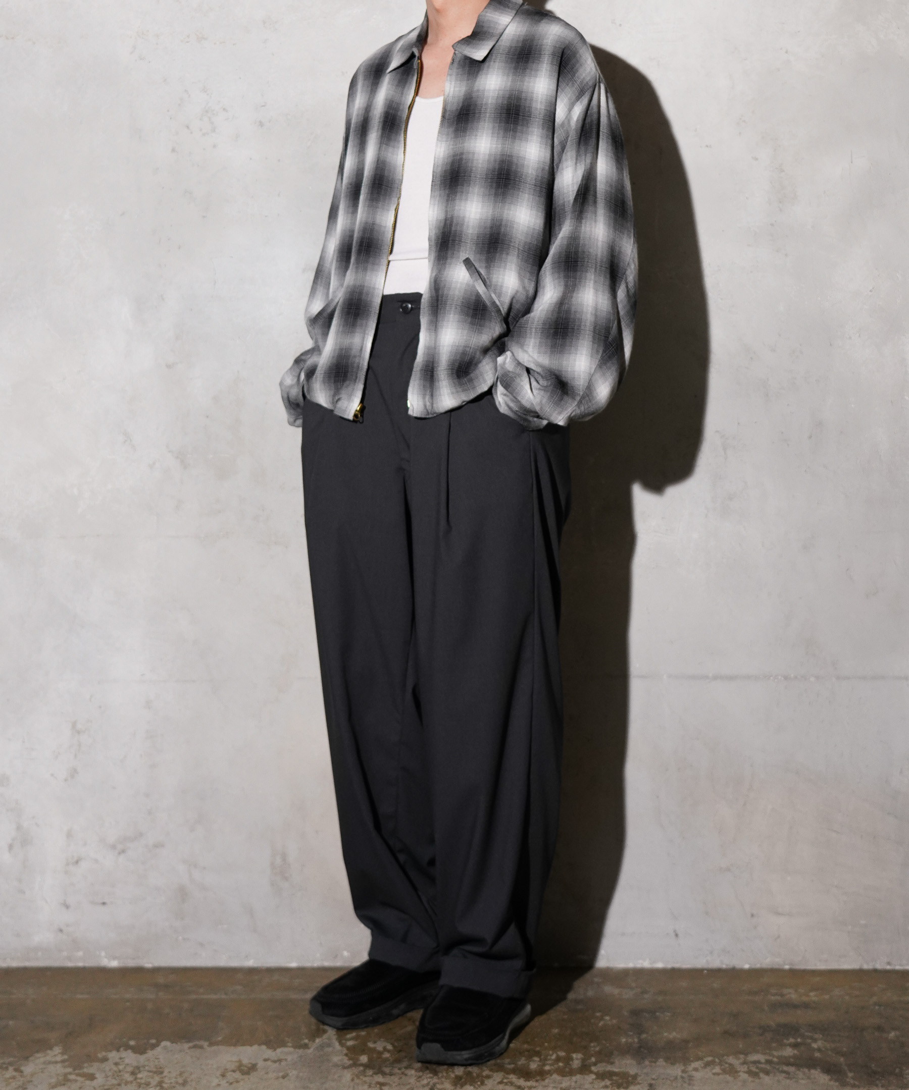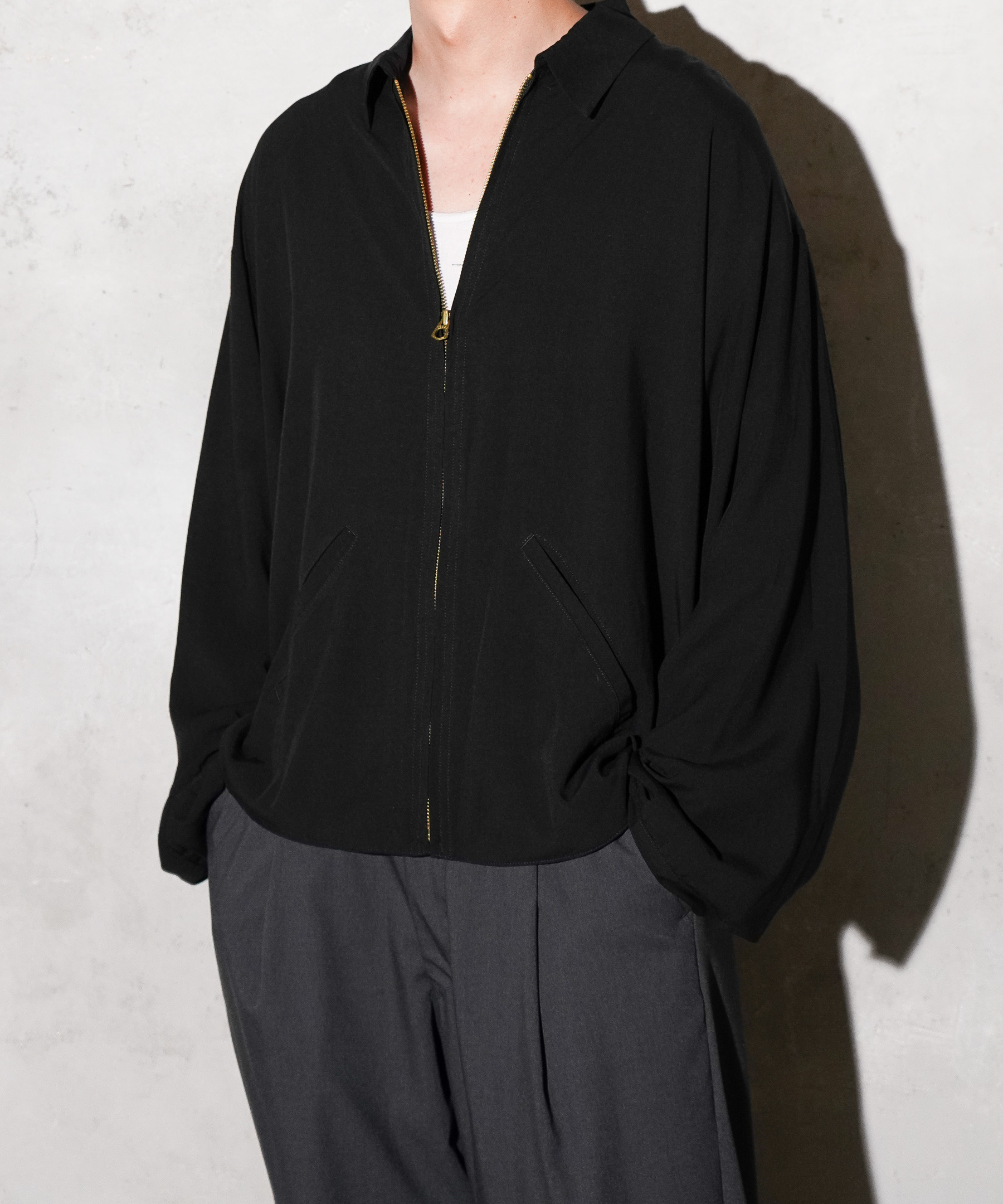 落ち感のあるレーヨン生地にすることでシャツ・ライトアウター感覚でご着用いただけます。