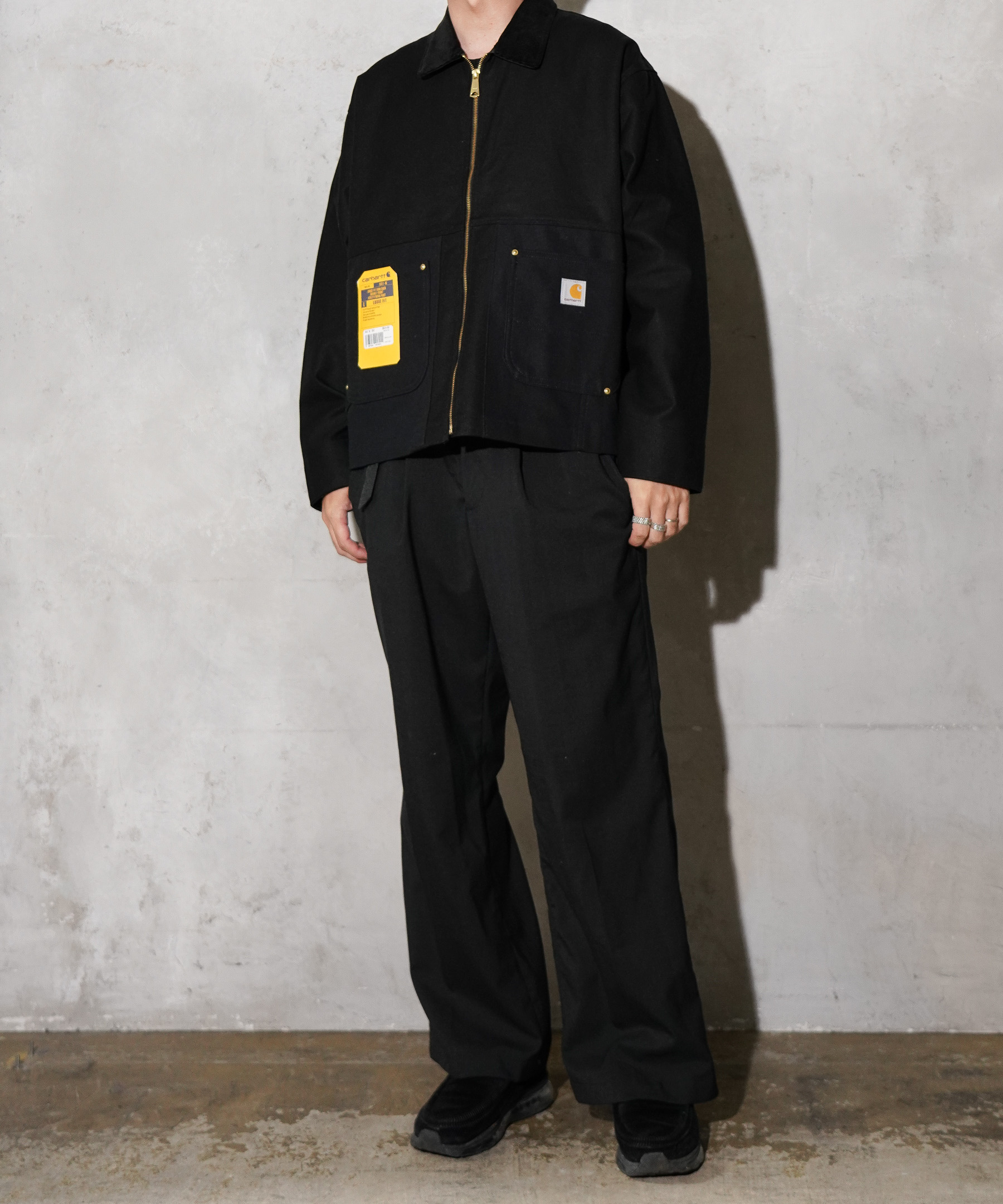 ヴィンテージの重厚な雰囲気を残しながらも、現代的なオーバーサイズシルエットに仕上げられた一着です。12ozのタフなダック地に、コーデュロイ襟やリベット補強ポケットなど、カーハートらしい無骨なディテールをしっかりと踏襲。
