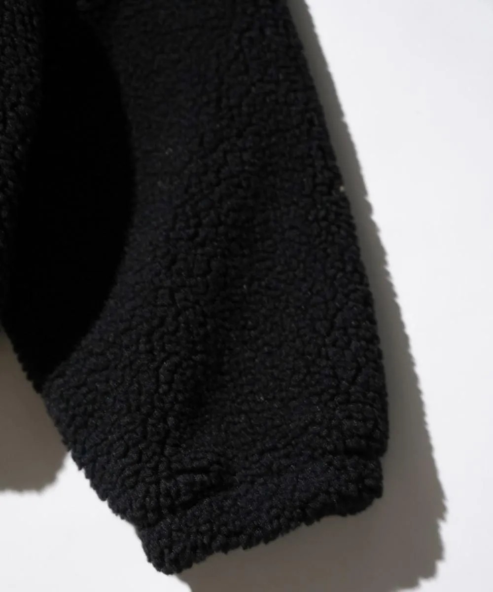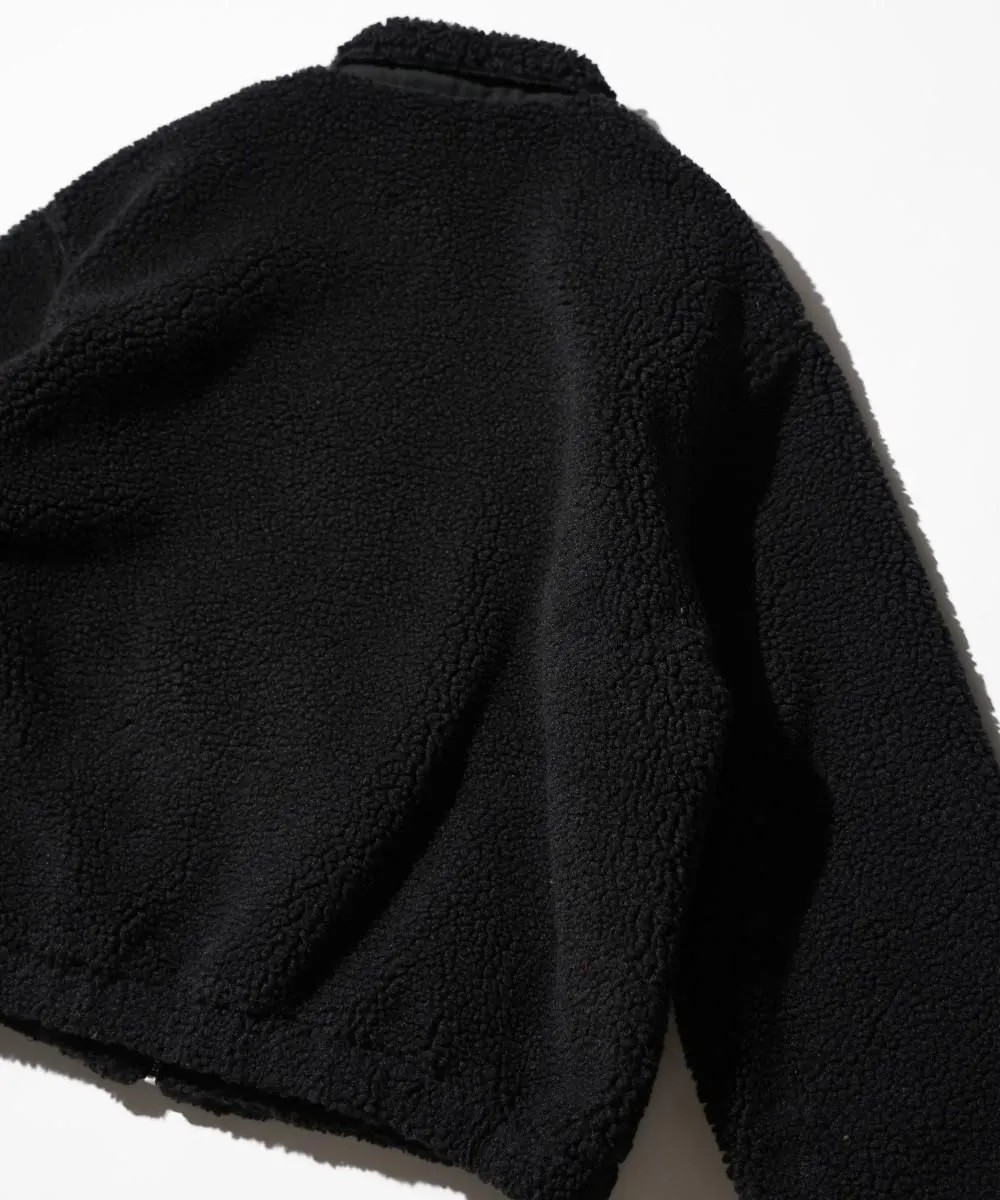 90年代アーカイブをベースにしたレトロ感のあるスウィングトップですが、ボアフリース素材のおかげで見た目以上に軽くて暖かいのが魅力。小ぶりな襟やショート丈のバランスが絶妙で、羽織るだけで旬なシルエットに仕上がります。裏地は滑りが良く、ストレスなく重ね着できるのも嬉しいポイント。フロントの大きめポケットや、創業1936年のIDEAL社ファスナーなど、細部の作り込みも◎。寒い季節のデイリーアウターとして、軽快さと防寒性を両立した一枚です。
