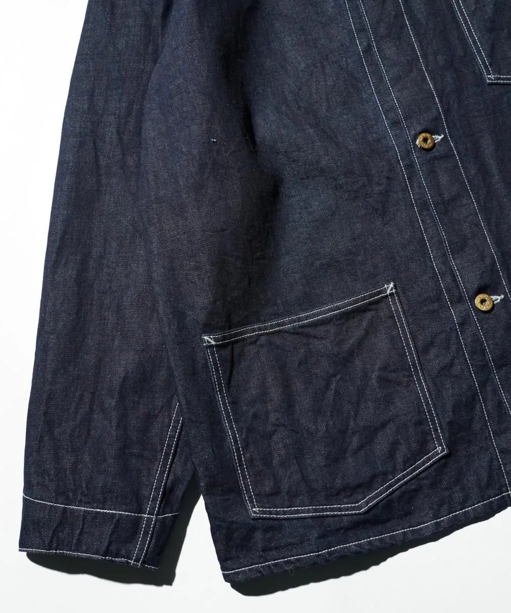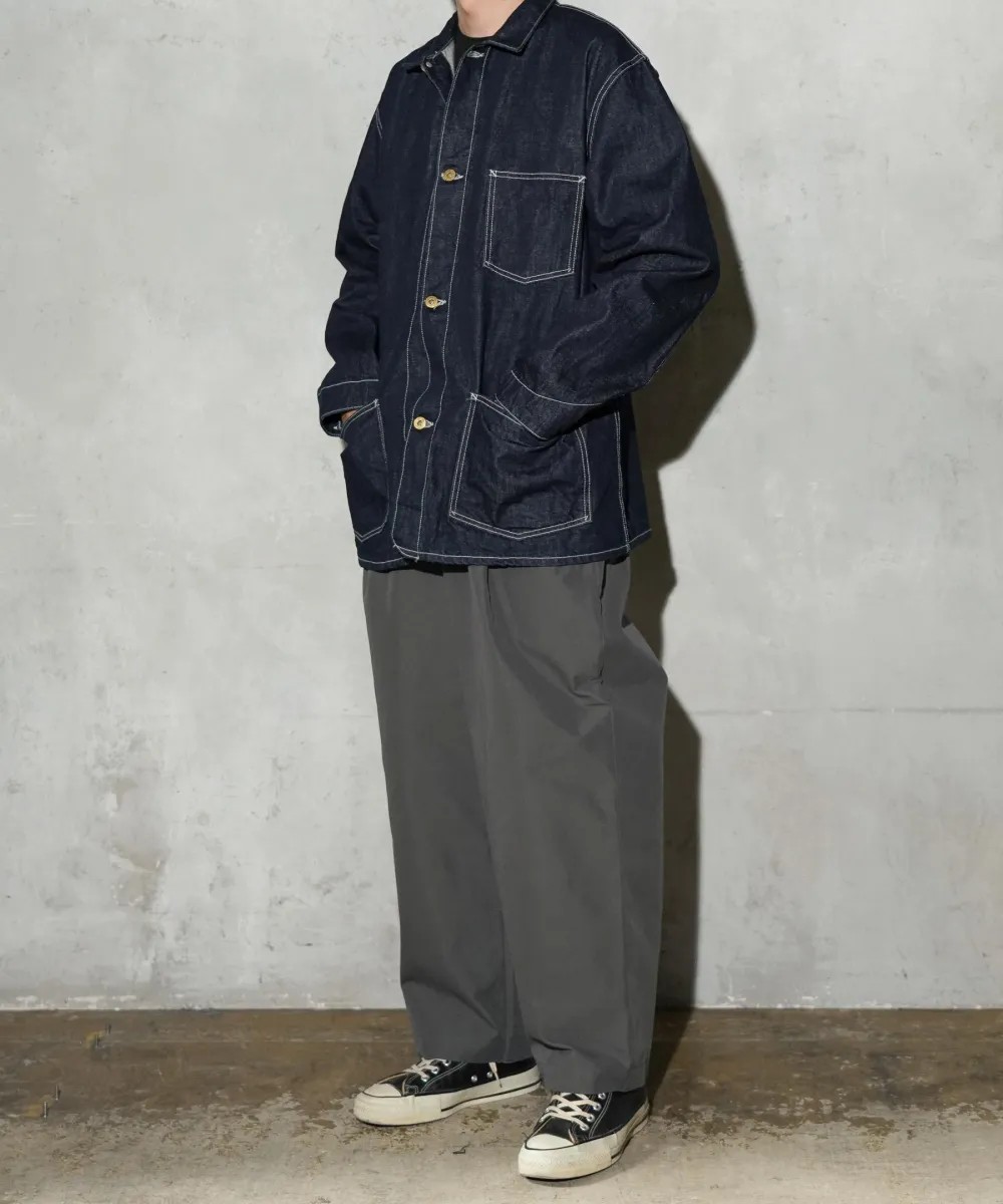今では手に入らない12ozのCONE DENIM(ホワイトオーク工場製デッドストック)を使用した、非常に希少性の高いスペシャルカバーオール。1940年代ヴィンテージをベースに、現代でも着やすいバランスへと昇華されています。生地・縫製ともにアメリカ製にこだわった一着は、着込むほどに表情を変え、唯一無二の経年変化を楽しめるのも魅力。デニム好きには間違いなく刺さる、コレクション性と実用性を兼ね備えた逸品です。