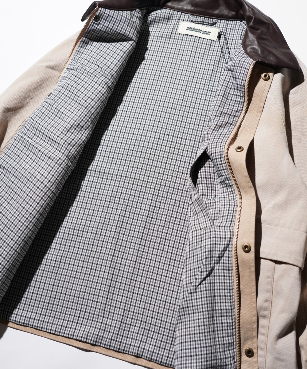 レザー切り替えの襟とヴィンテージウォッシュ加工が、最初からこなれた雰囲気を演出してくれる一着。クラシックなカバーオールの要素をベースにしつつ、リラックス感のあるシルエットやラグランスリーブで今っぽく仕上げられています。裏地のチェックやダブルジップ仕様など、着たときに気分が上がるディテールも◎。軽めのアウターとしてロングシーズン活躍し、シンプルなスタイリングに羽織るだけで存在感を出してくれるジャケットです。