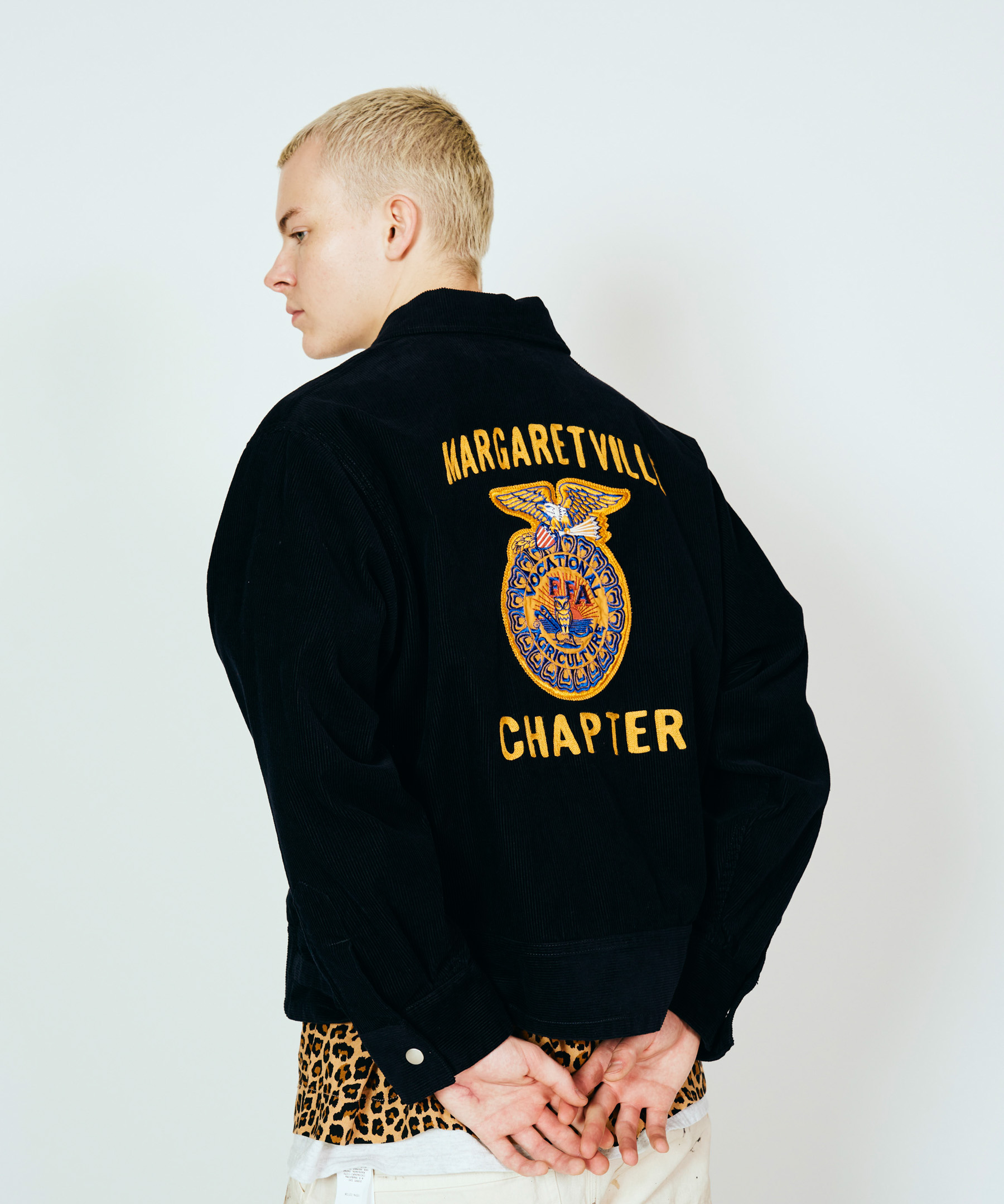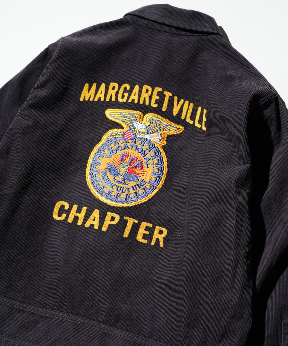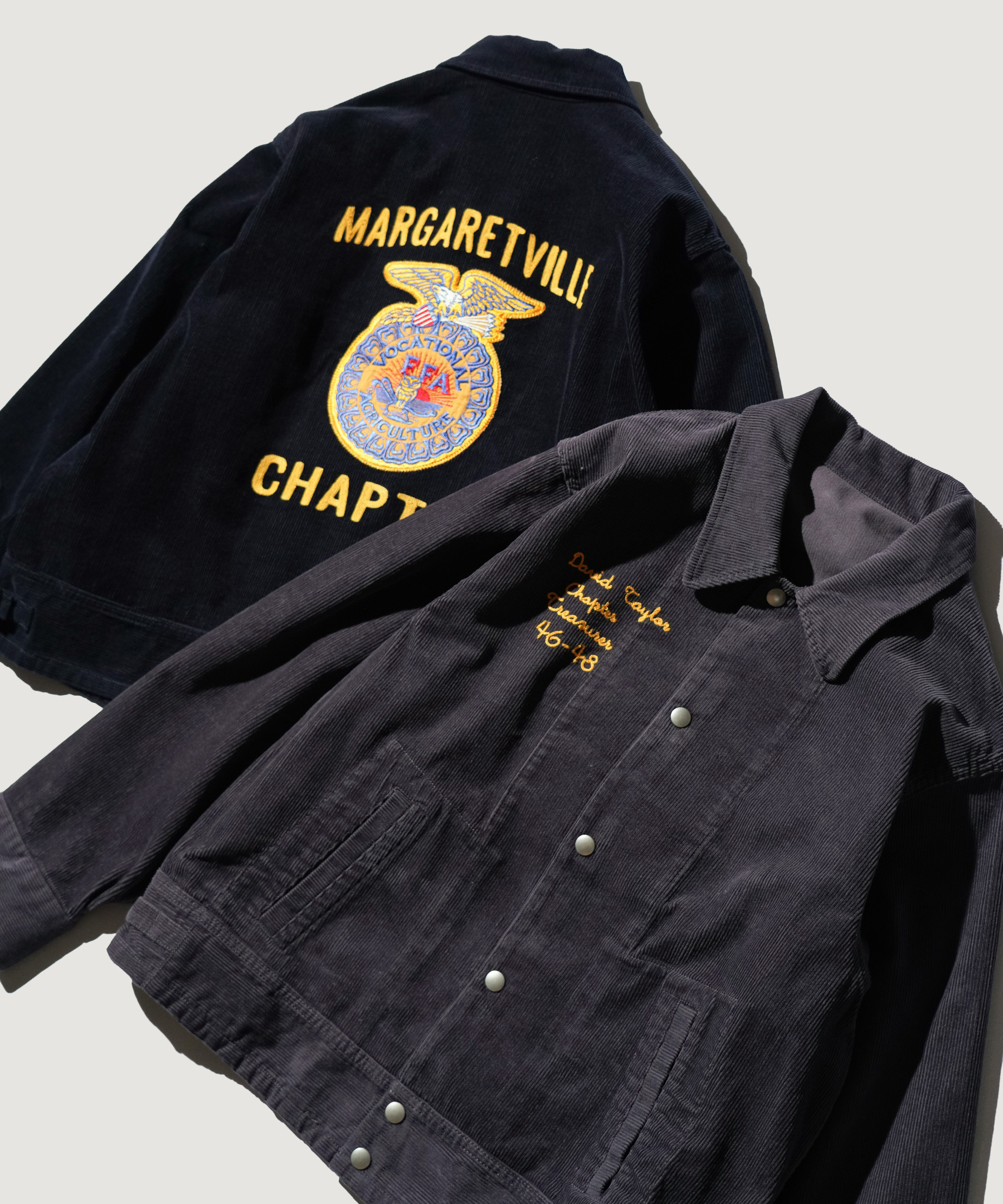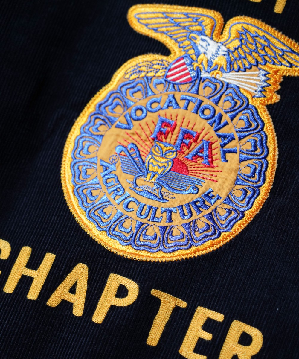 FFA(Future Farmers Agriculture)ジャケットは1928年設立、アメリカの国立農学校のユニフォームウェアで州ごとに違う刺繍、着用者の名前が施されているジャケット。