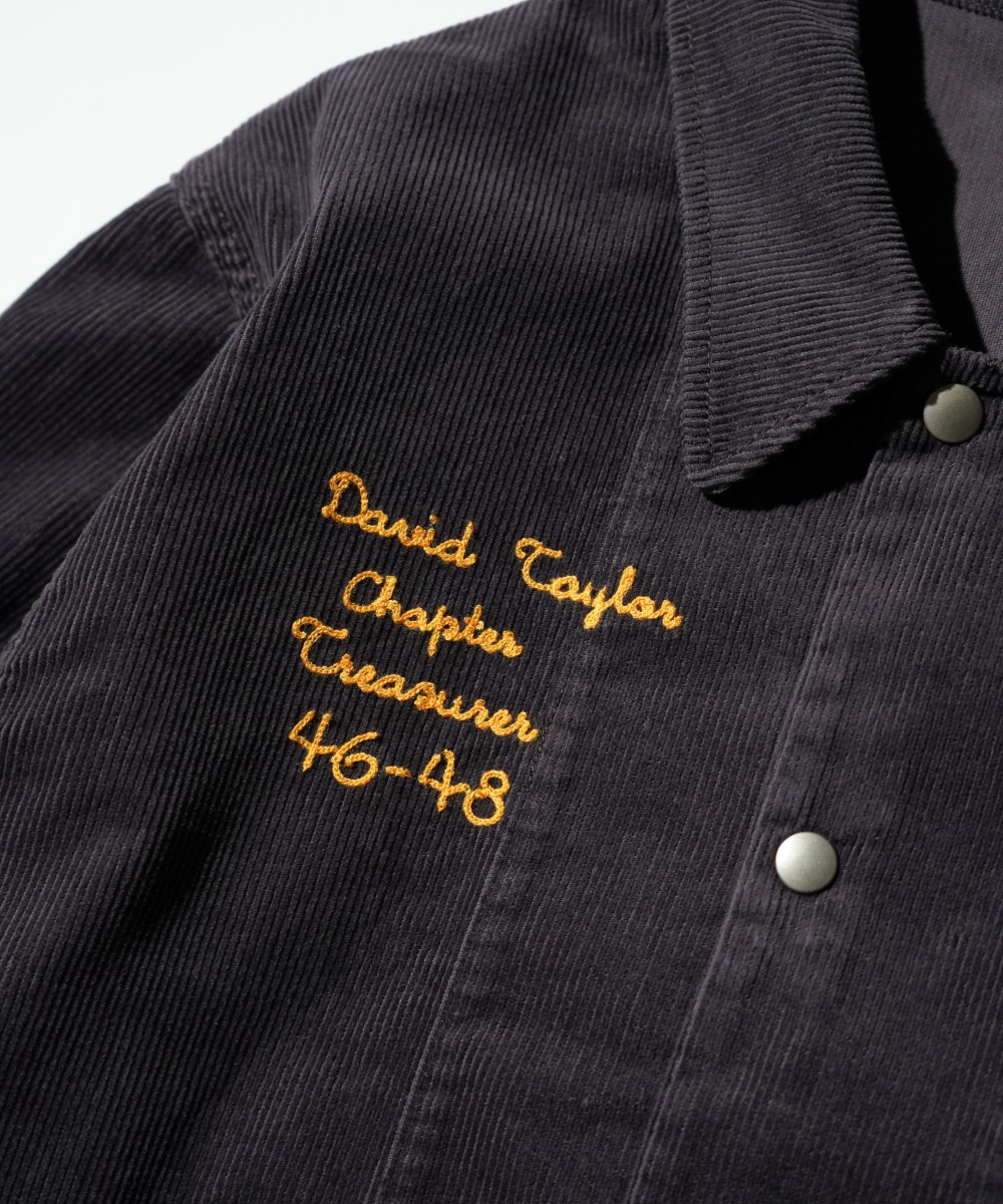 ・胸にはFFAジャケットのディテールの一つともいえるチェーンステッチでオリジナルと同様の名前を刺繍。