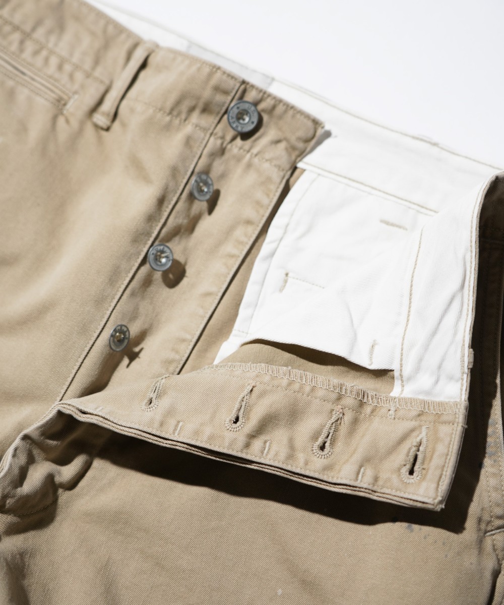 1941年モデルのKHAKI TROUSERSをベースに、BOW WOWらしいリアルな経年加工を施した一本。