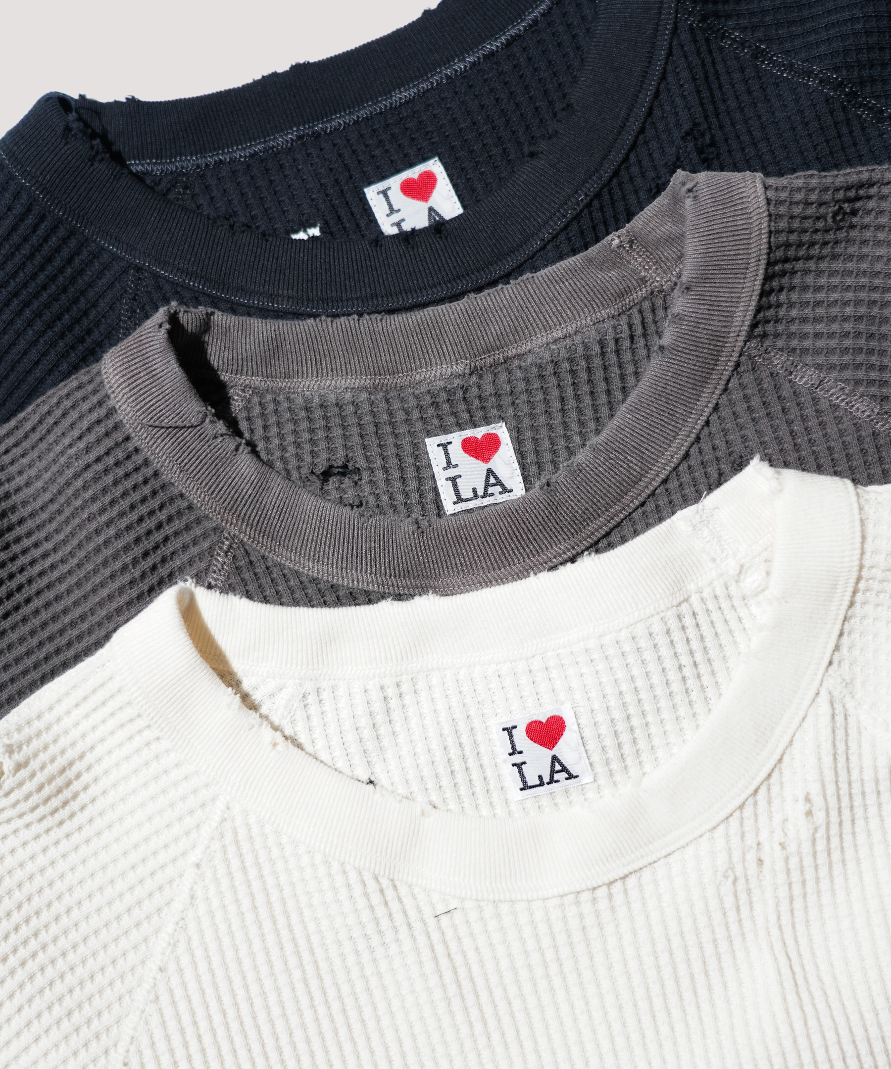 古着のような風合いが魅力の、I LOVE LA のロングスリーブワッフルTEE。