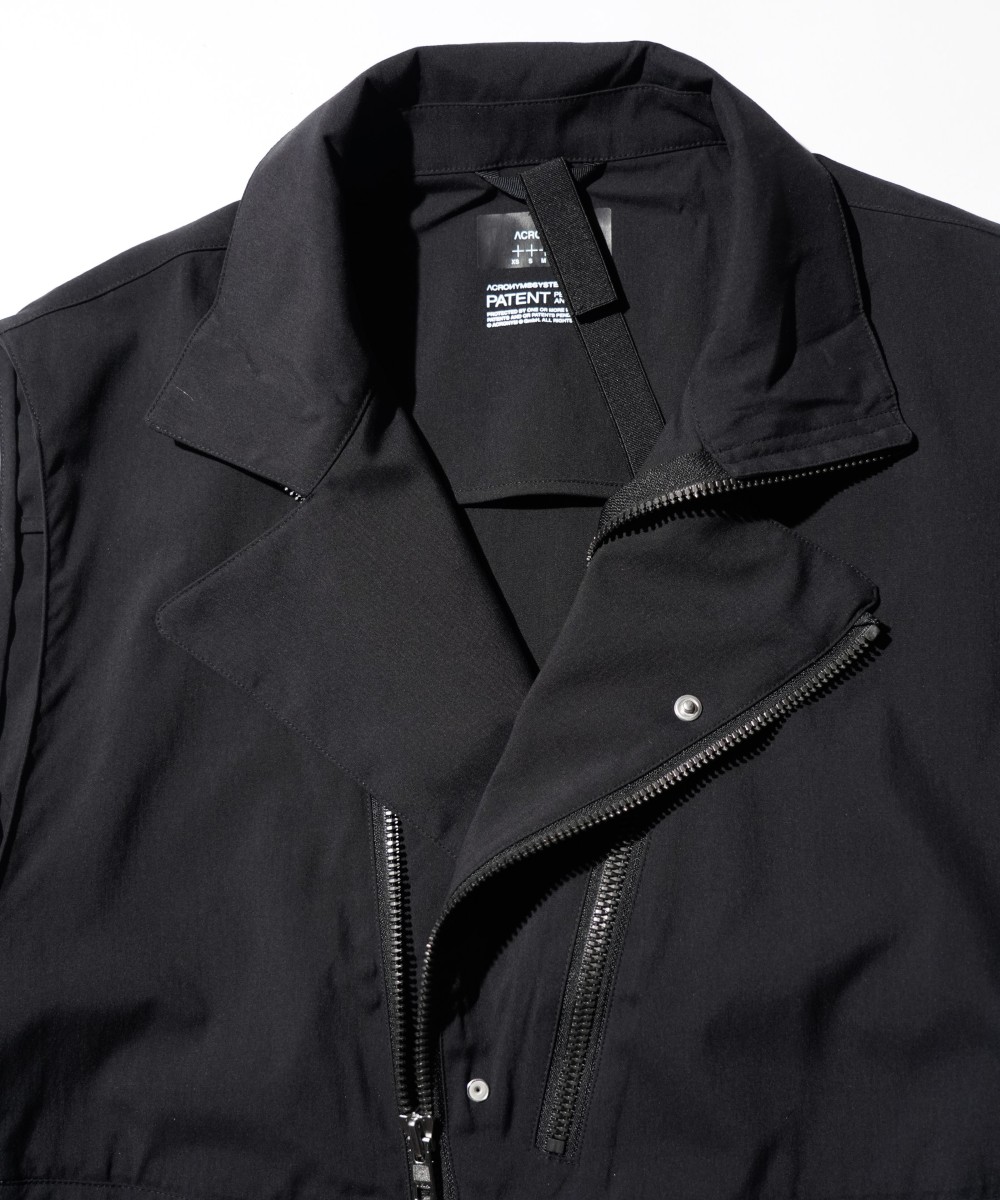 立体的なポケットワークや大容量の胸ポケットなど、機能面も抜かりなし。さらにジャケットを背負える“JACKETSLING”や、イヤホンを固定できる“FORCELOCK”など、ブランドらしいギミックも搭載。デザインと機能を高次元で両立した、まさにACRONYMらしい一着です。