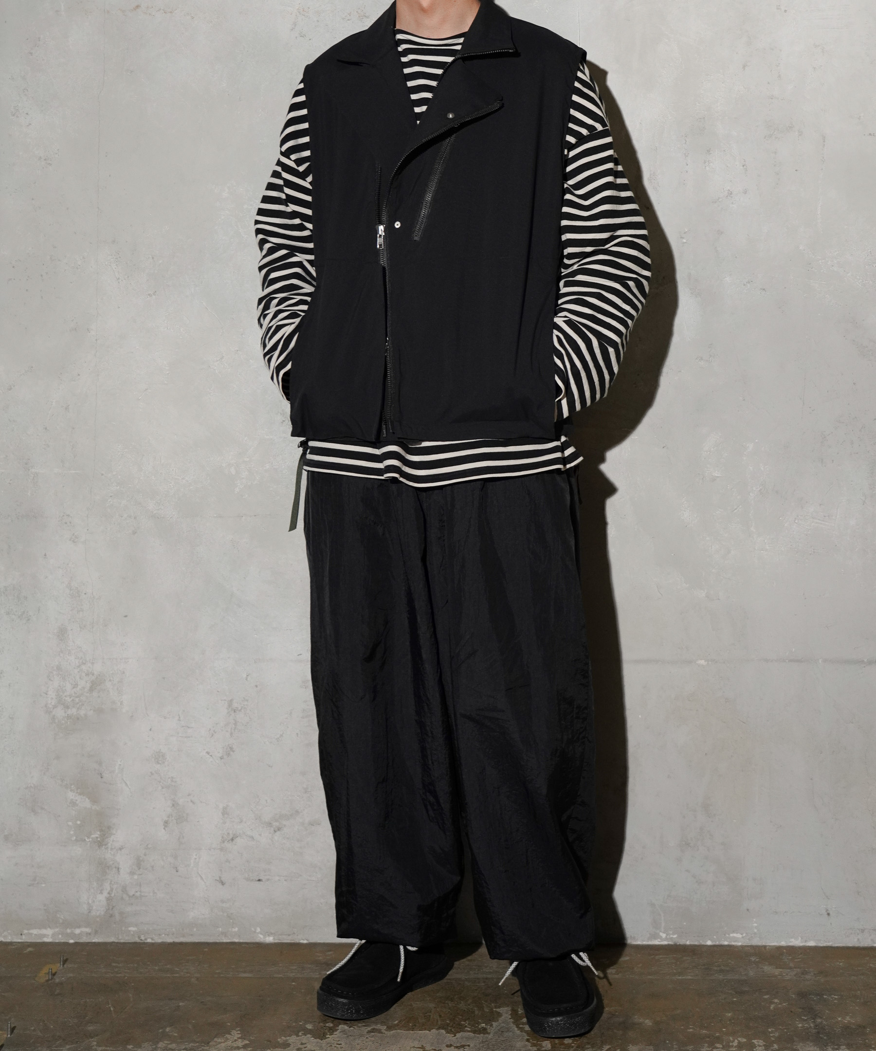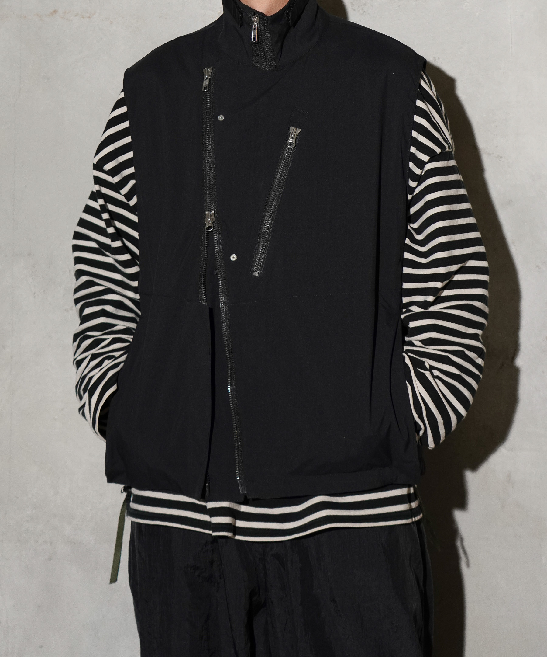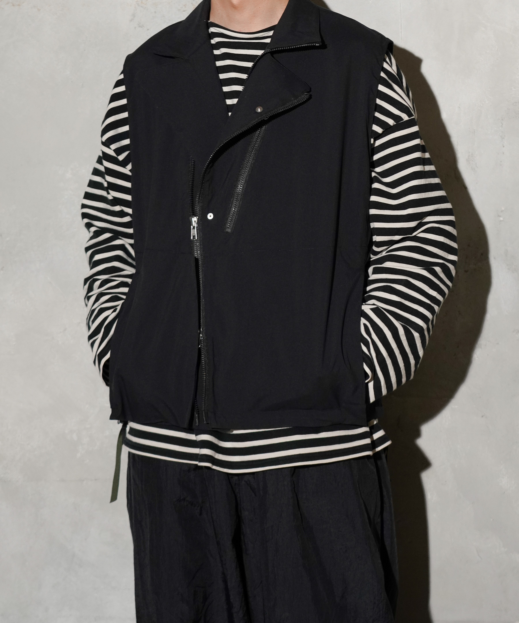 ライダースのディテールを落とし込んだ、テクニカルなナイロンベスト。