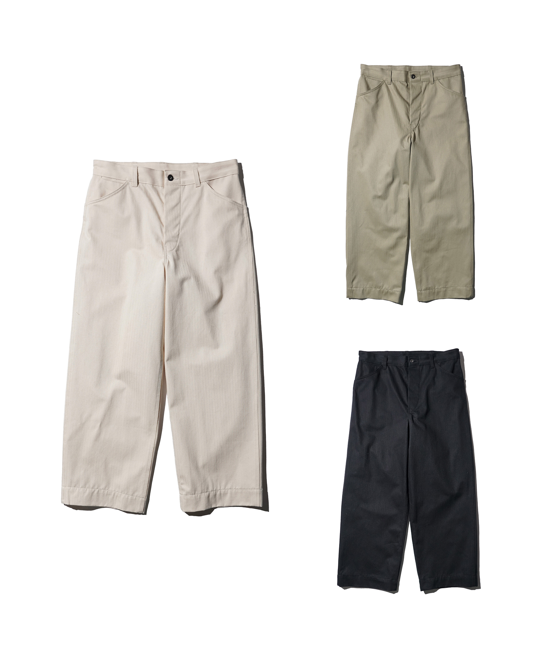 1940年代、アメリカ海兵隊(USMC)のベーシックユニフォームとして採用されていたユーティリティーパンツをベースに素材・色・用途を再構築したアップデートモデル。