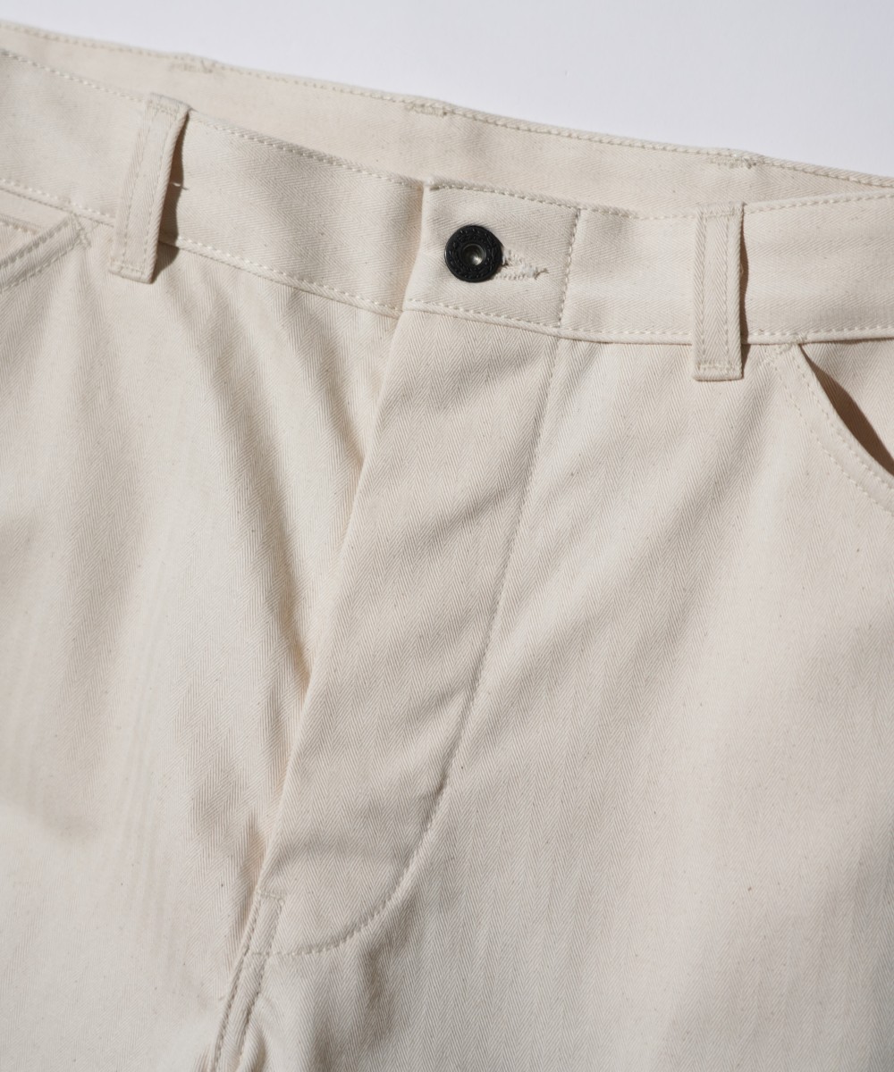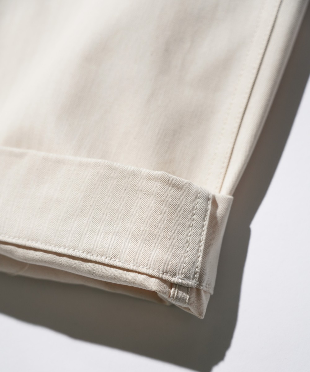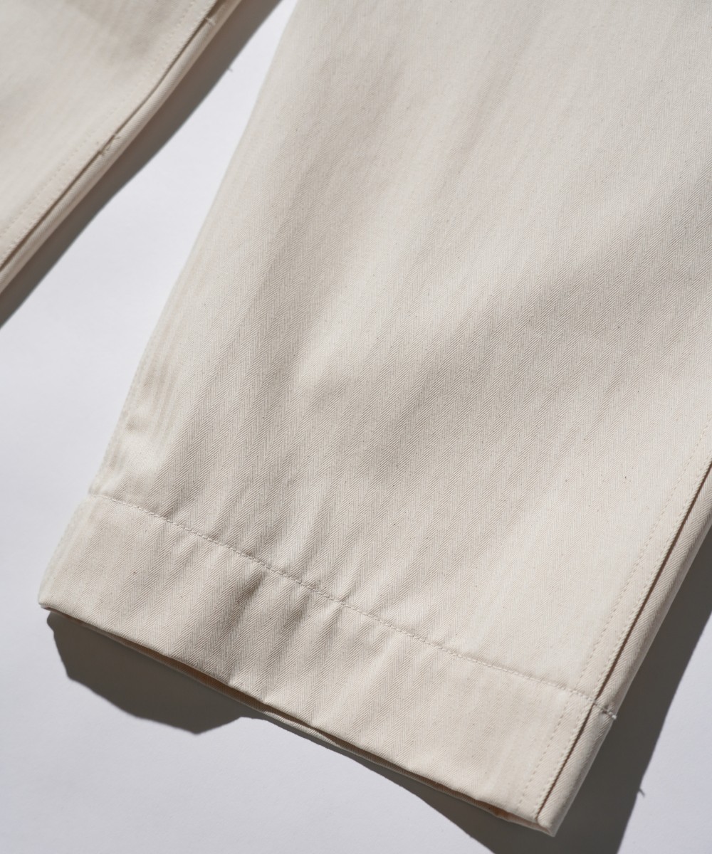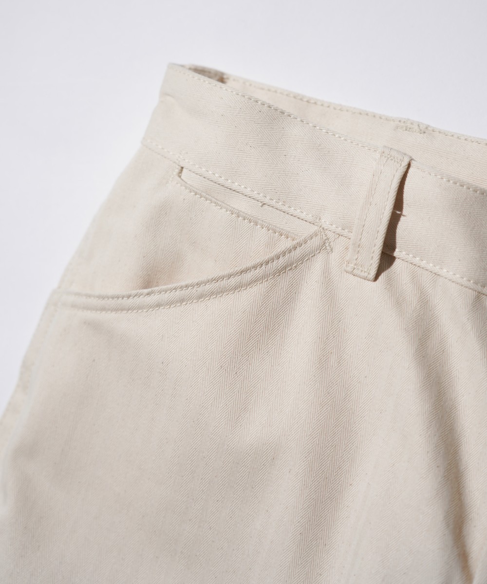 ヘリンボーンツイルのパンツは着込んでいく毎にヴィンテージの様な風合いへと変化していく一着です。