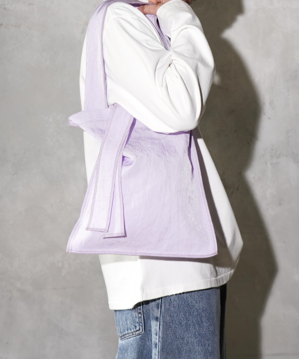 裏返したようなデザインが目を惹くワンショルダートート。