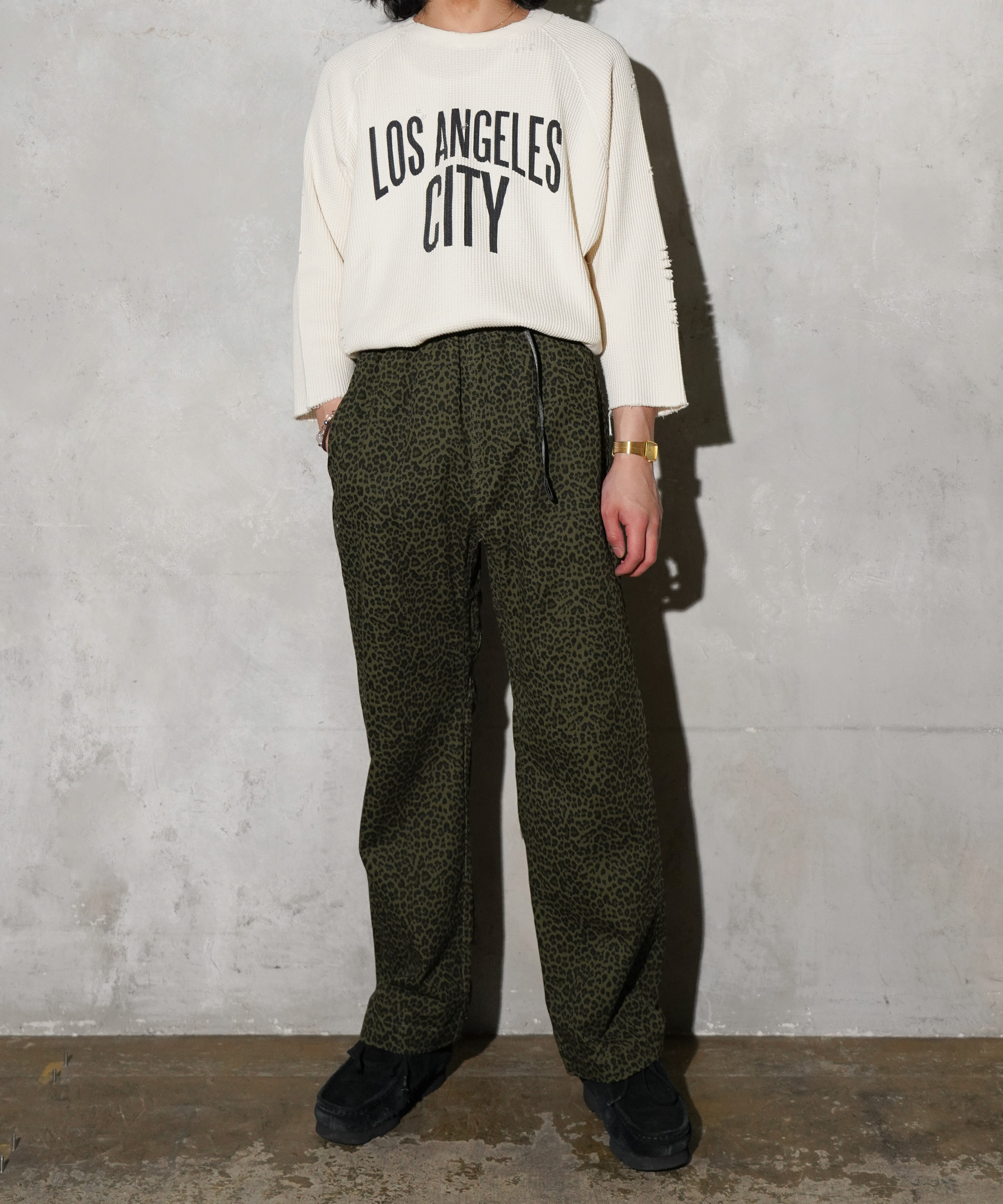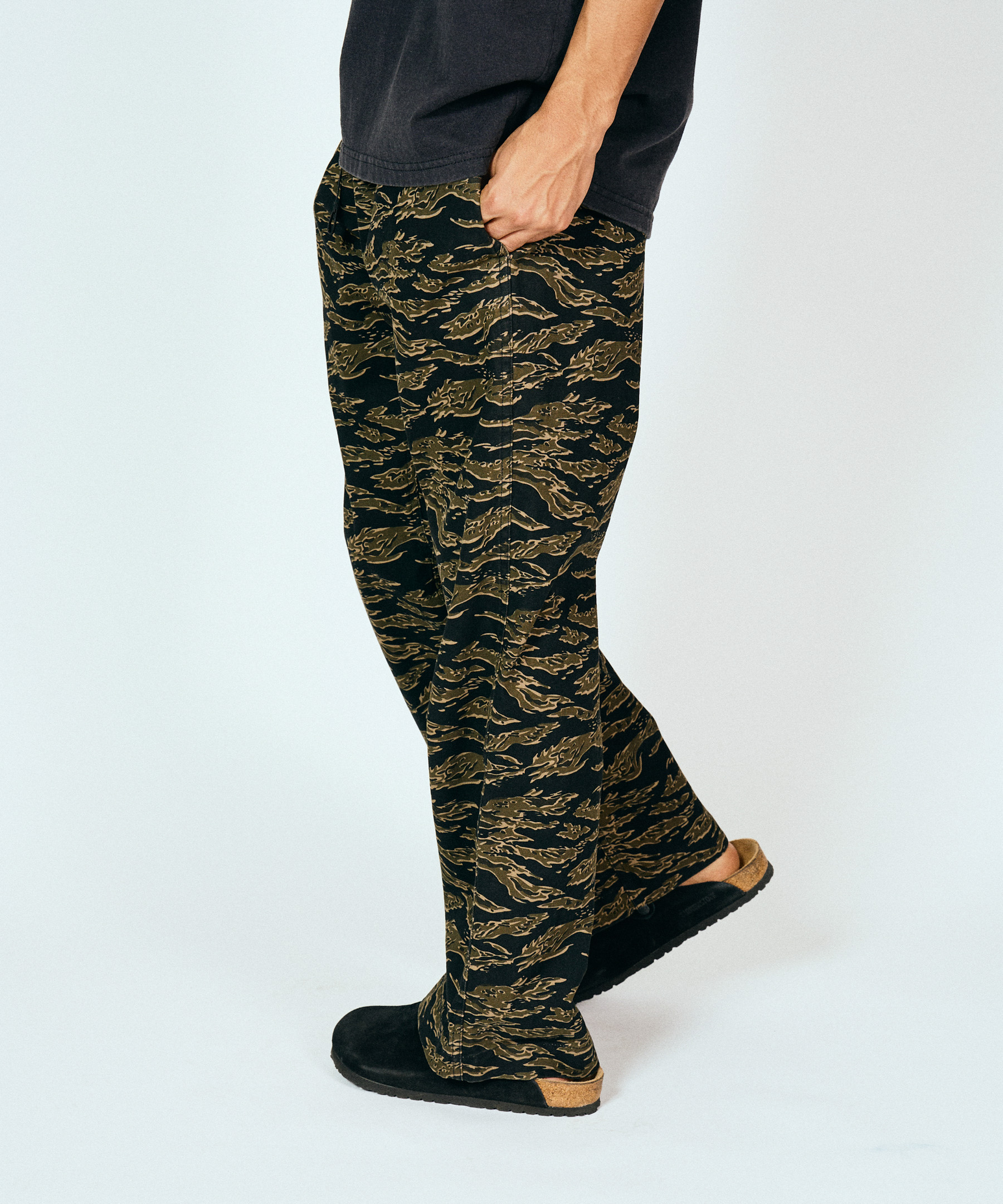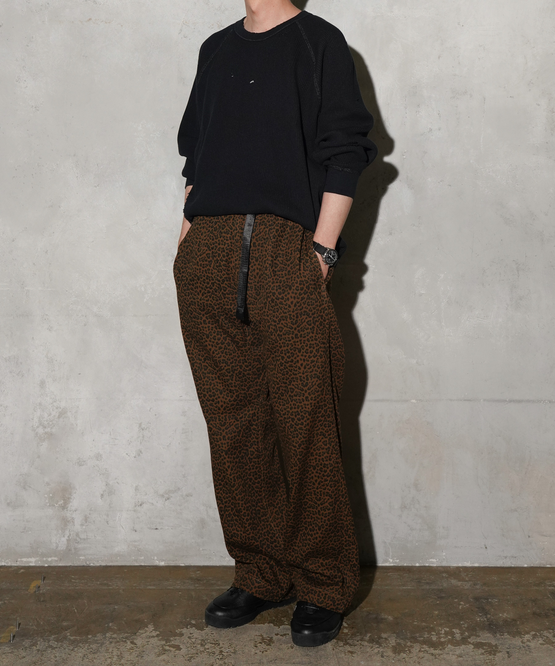 90年代アウトドアのクライミングパンツをベースに、現代的にアップデートされた一本。アースカラーのレオパードやタイガーカモはインパクトがありながらも、スタイリングに自然と馴染む絶妙なバランスです。