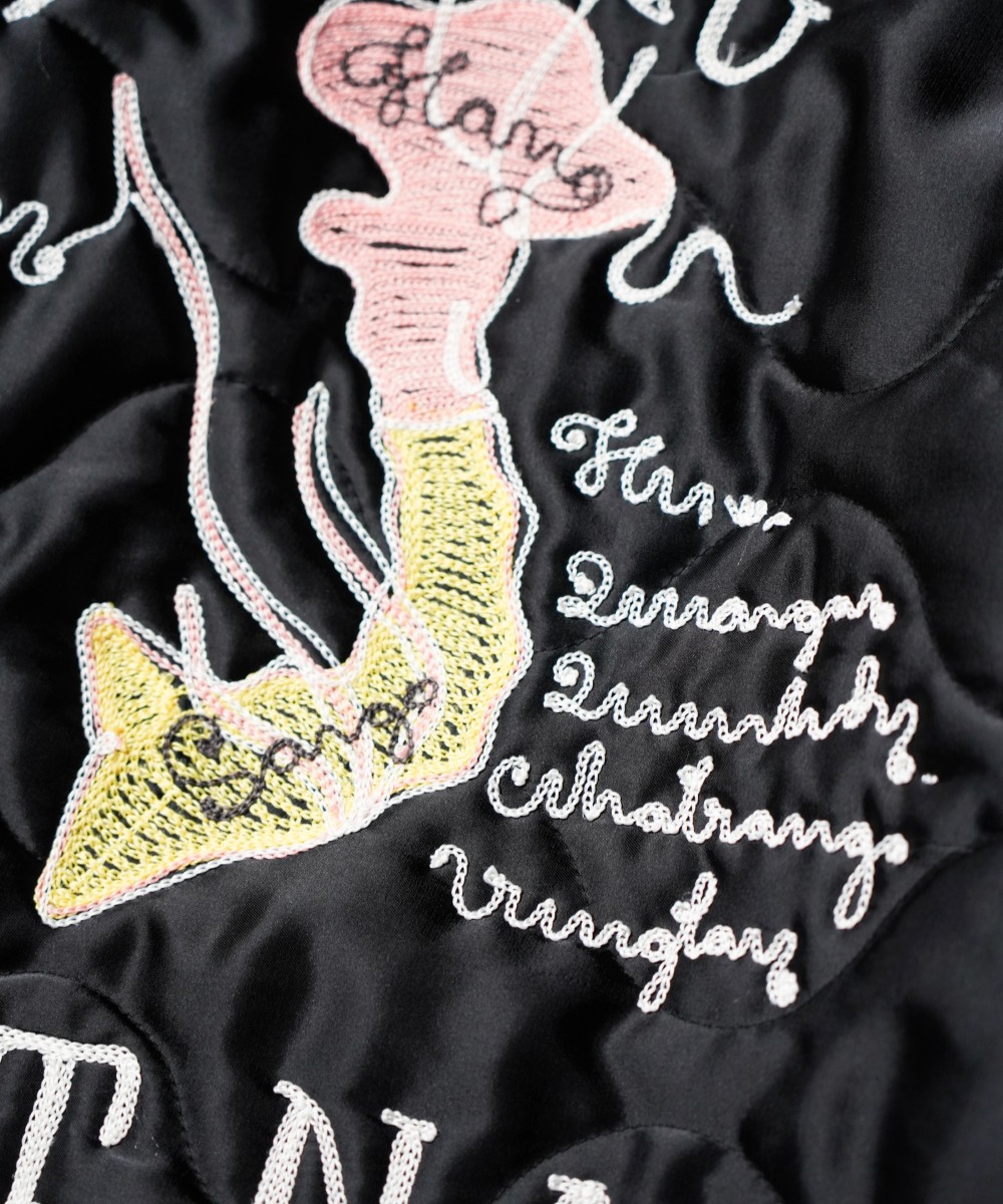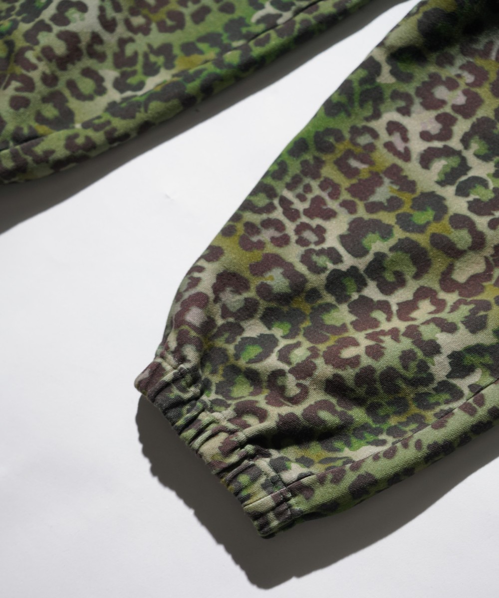 杢グレーのスウェットパンツをガーメントダイし、ライムの色味にとてもユニークなメランジ感をもたらしたスウェットパンツ。