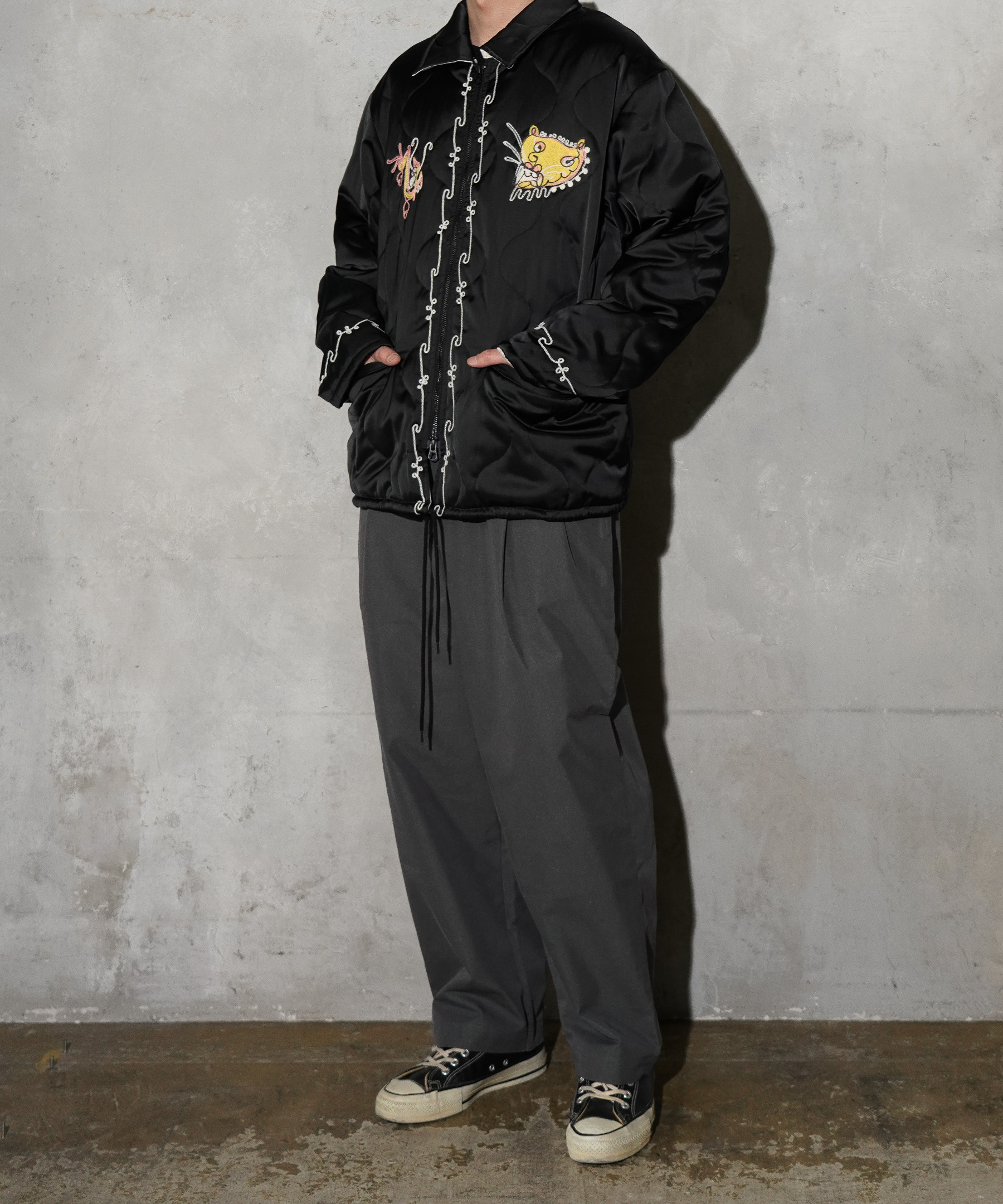 ガーメントダイによって生まれた、ライムグリーンの奥行きあるメランジ感が印象的な一本。存在感のあるカラーながら、杢グレー由来の柔らかい表情でスタイリングに自然と馴染みます。膝下で切り替えてショーツとしても使えるため、シーズンレスに活躍。同素材トップスとのセットアップで、PHINGERINらしい遊びのある着こなしもおすすめです。