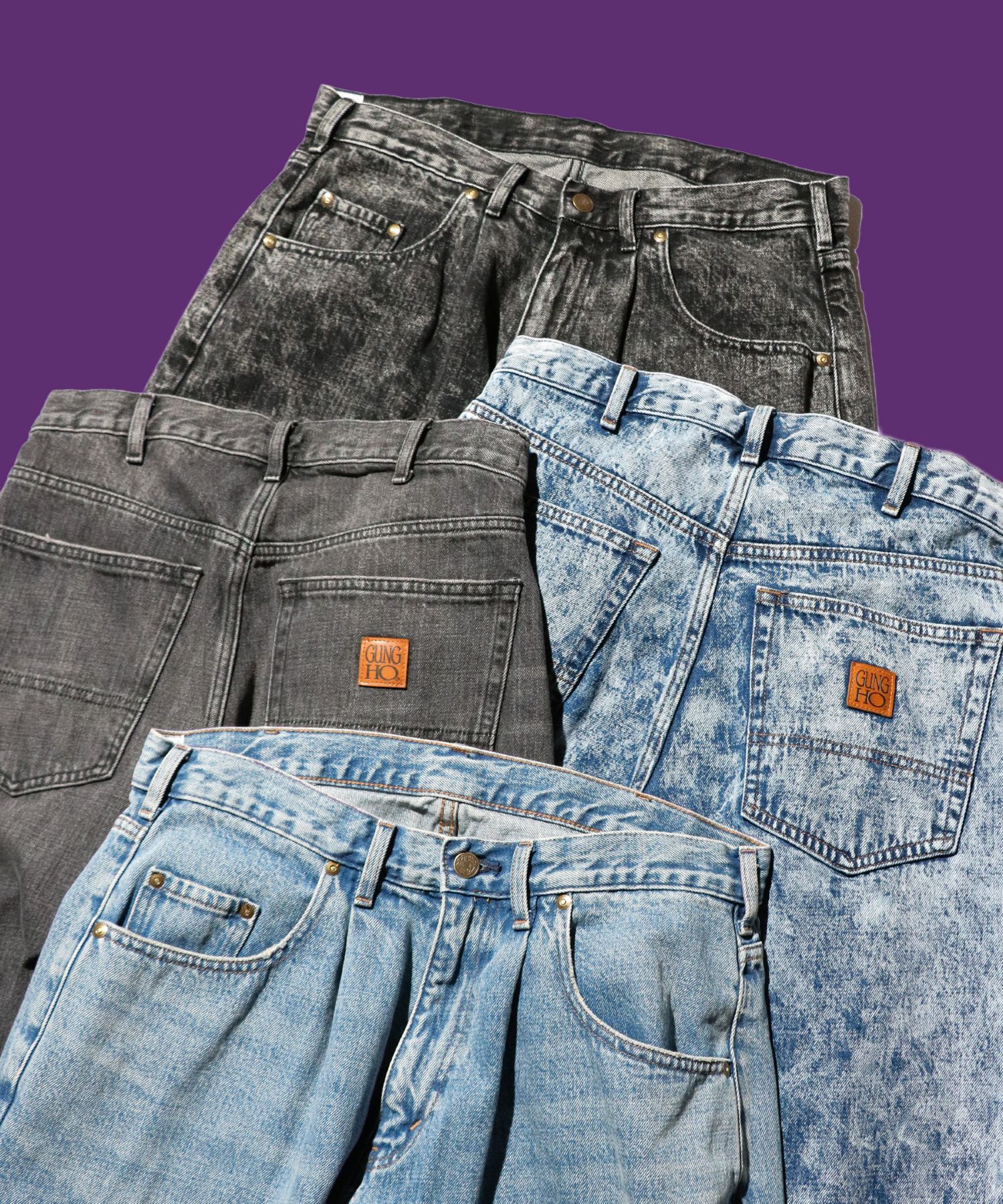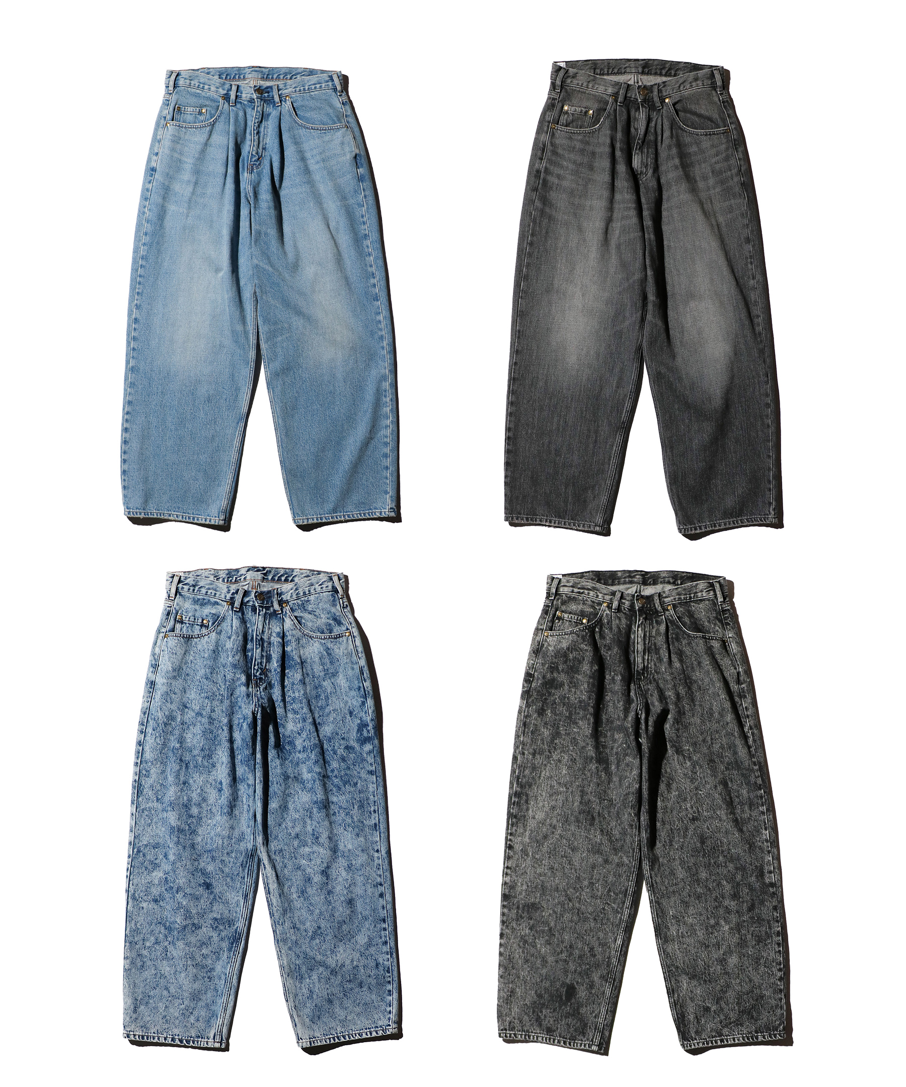 ・ブルー、ブラックはユーズド加工を施しており、まるで古着のような自然な加工感が特徴。