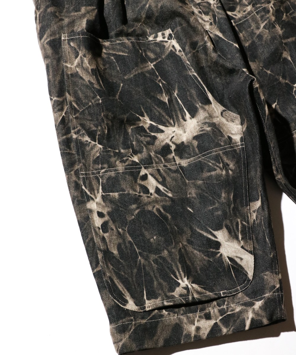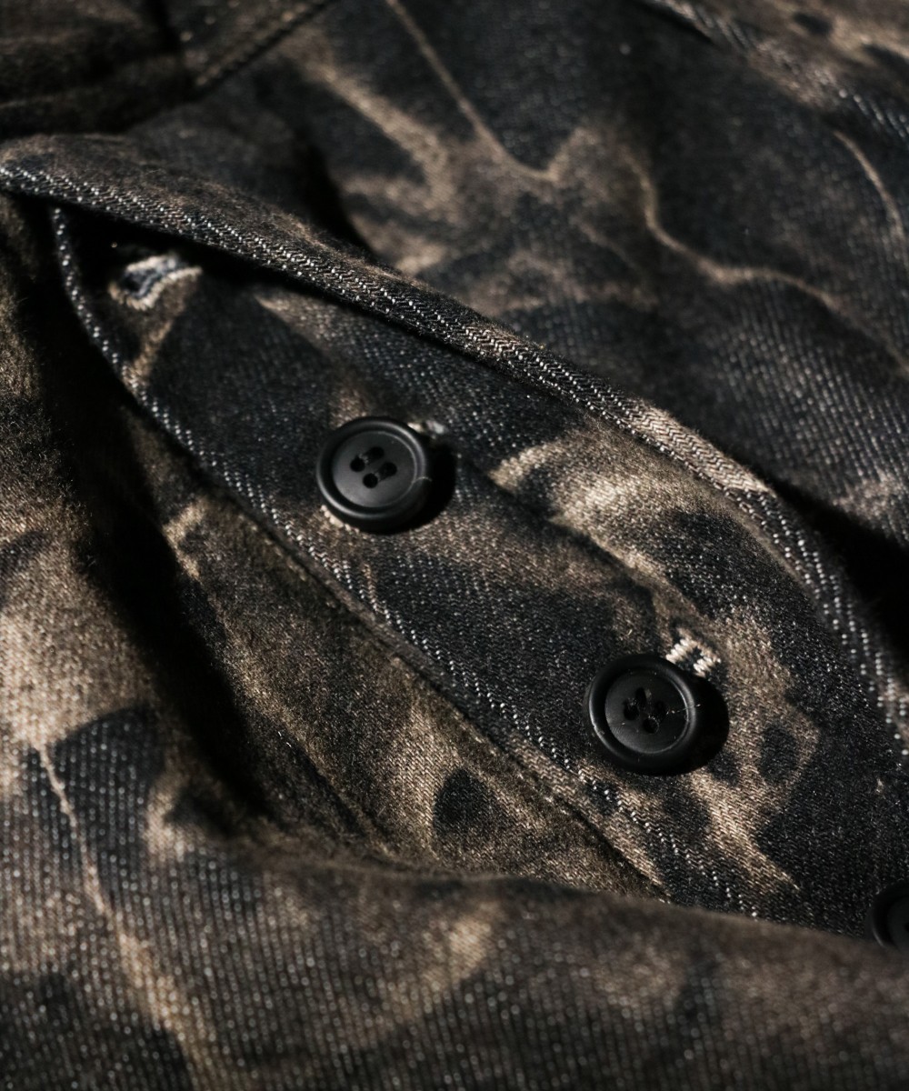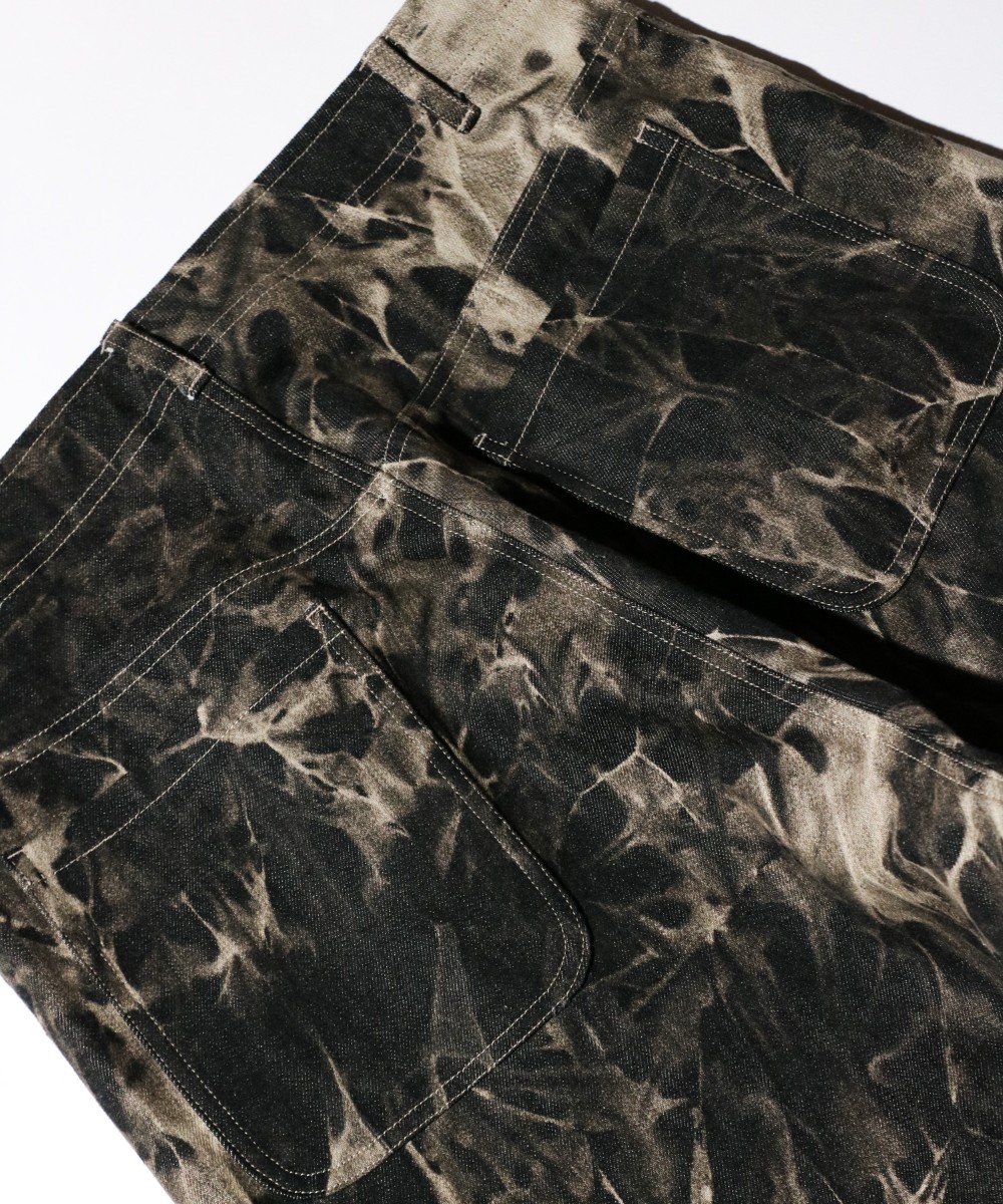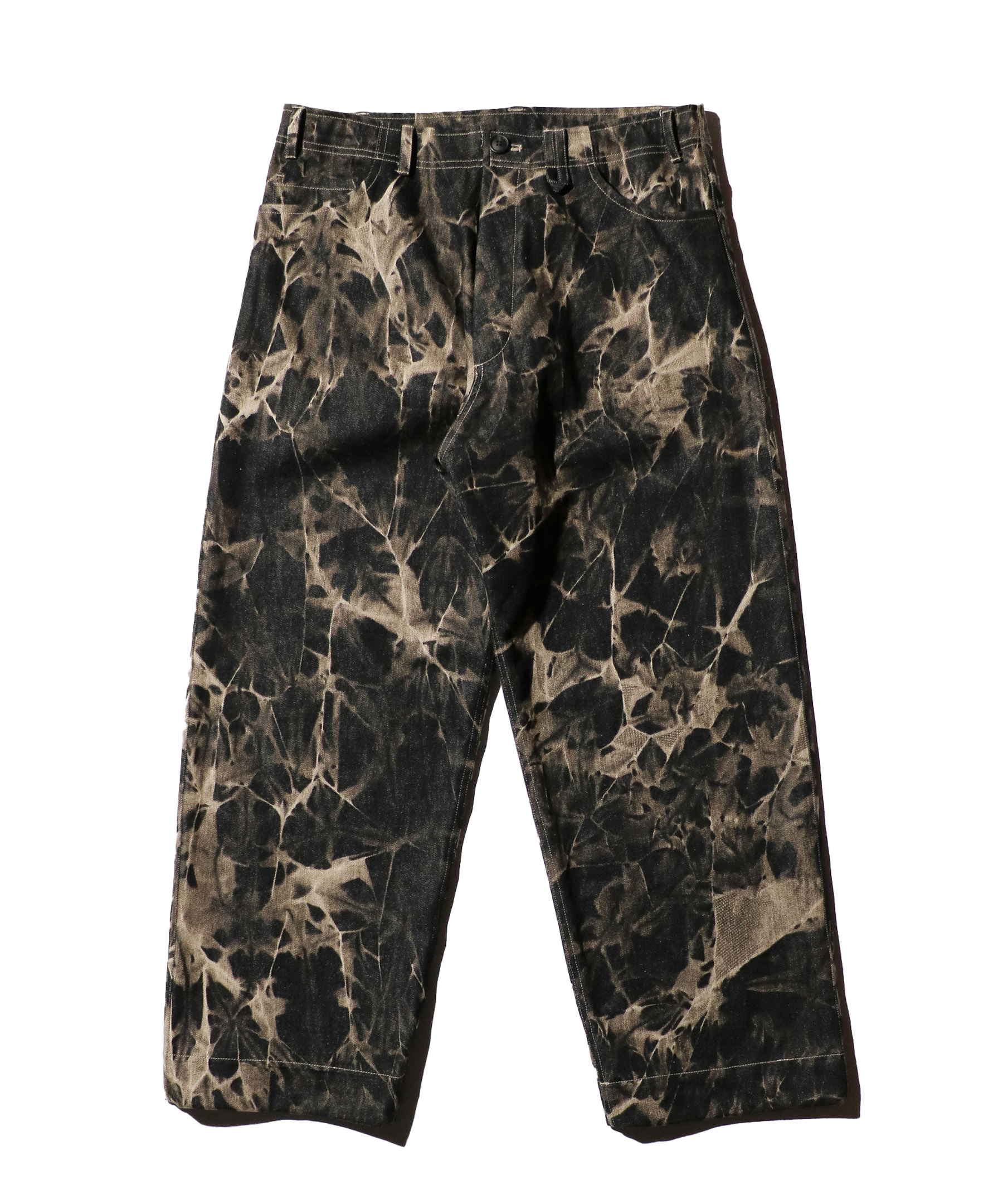 ストーンウォッシュ加工とケミカルウォッシュ加工を施したデニムパンツ。