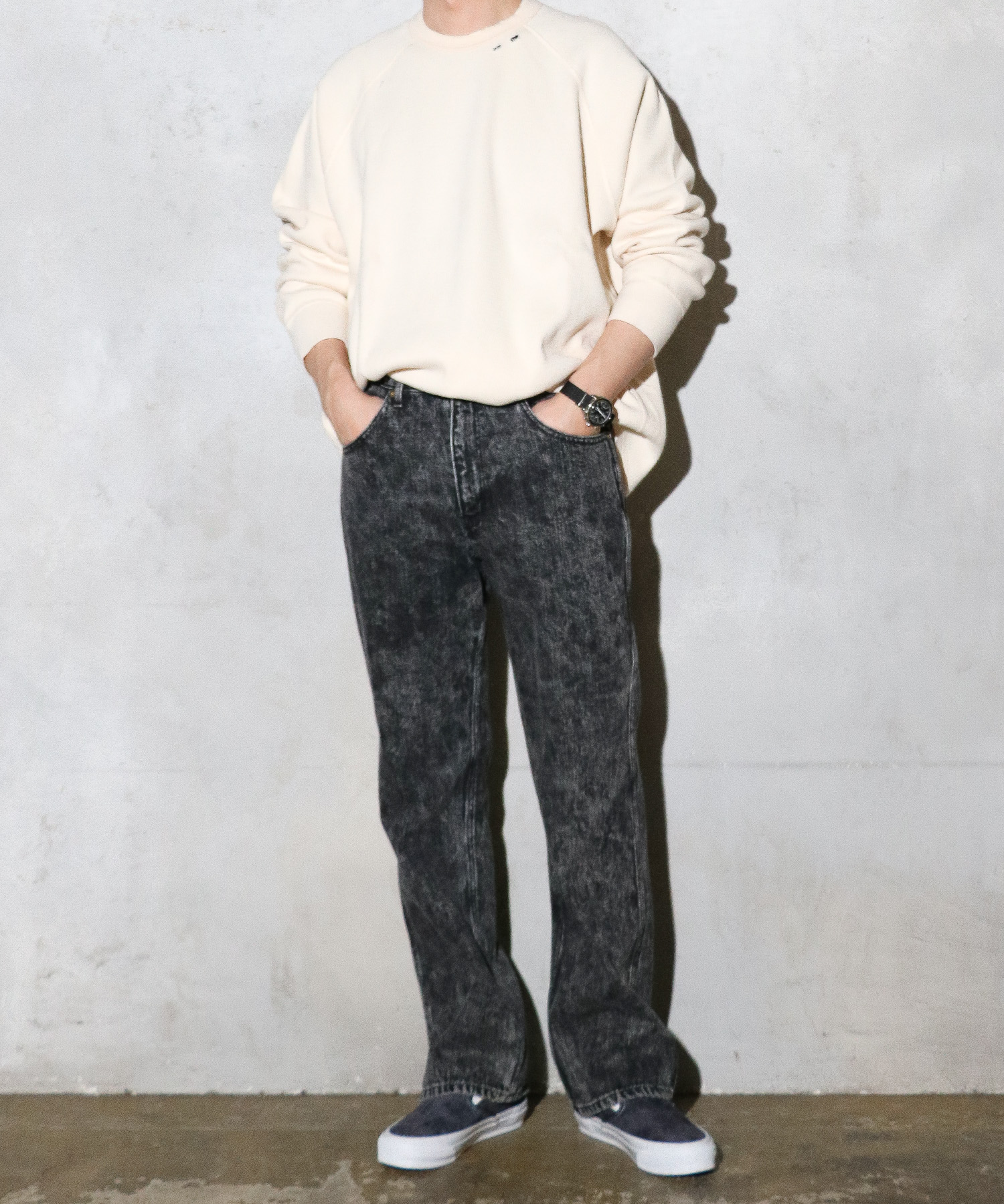 ・ライトブルー、ブラック1はハード過ぎないケミカルウォッシュを施しております。