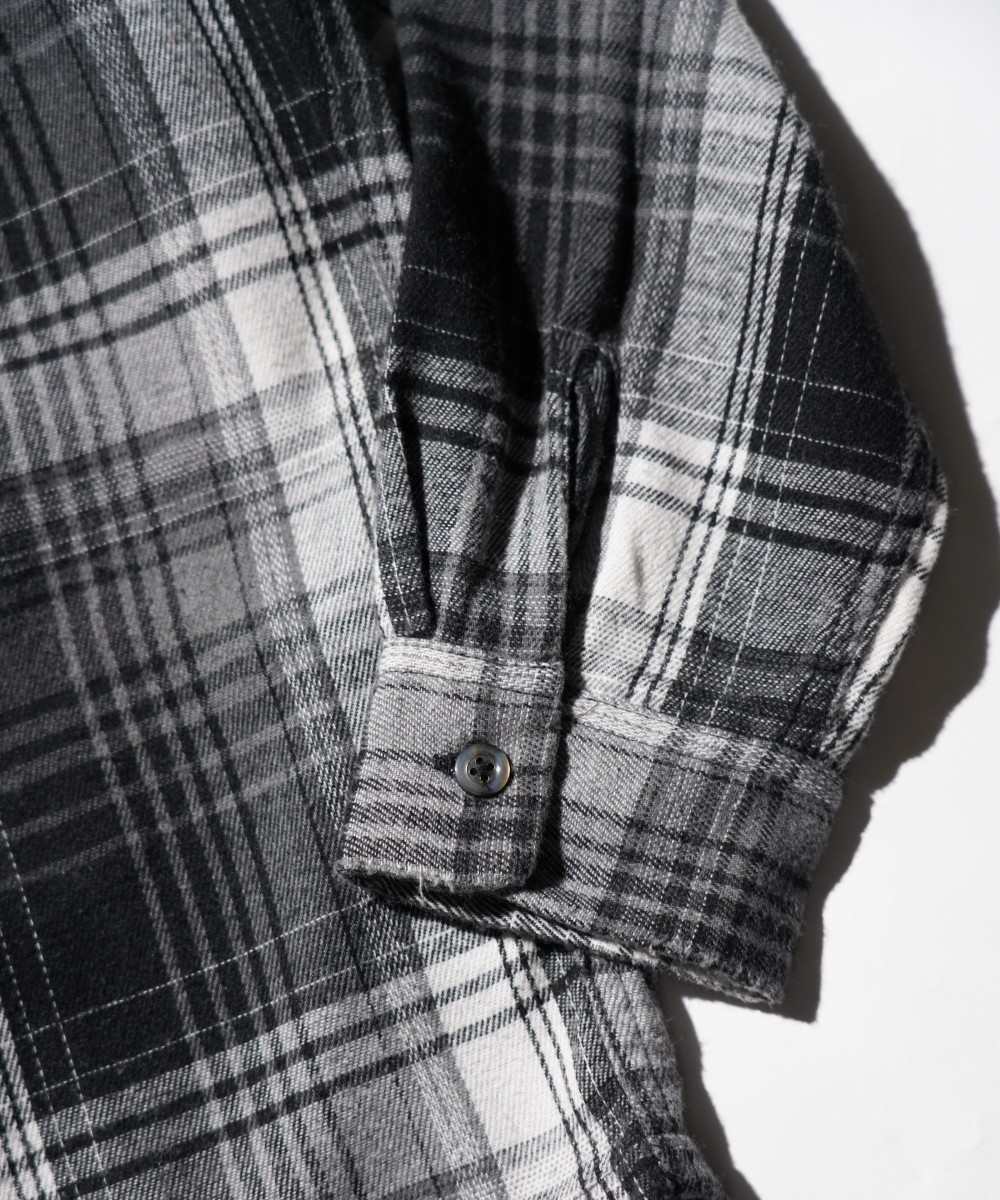 古着のボックスシルエットをそのままいかし、ざっくりとしたフランネルを採用しヴィンテージライクに仕上げました。